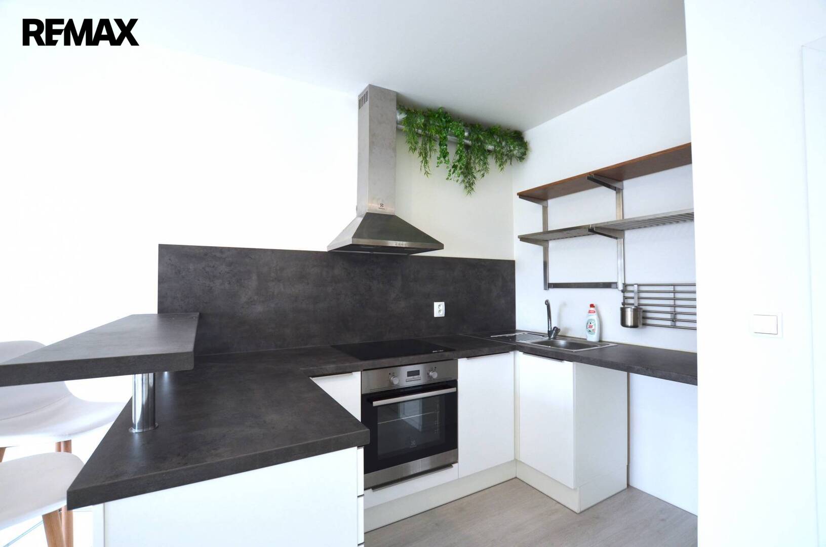 Vybavení bytu: kuch. linka se sklokeramickou varnou deskou, troubou, digestoří, dřezem, 2 x barová židle, lednice možno po domluvě.