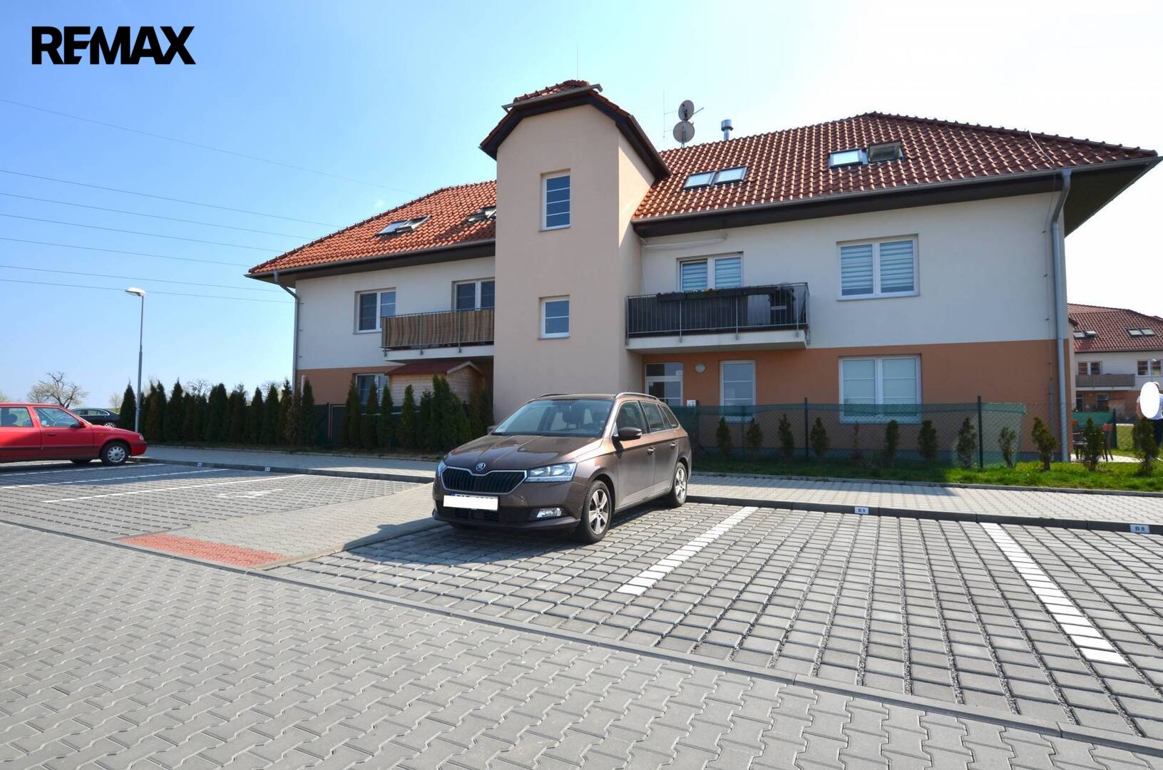 K dispozici je i společná kočárkárna/kolárna. Parkování na parkovacím stání u domu.