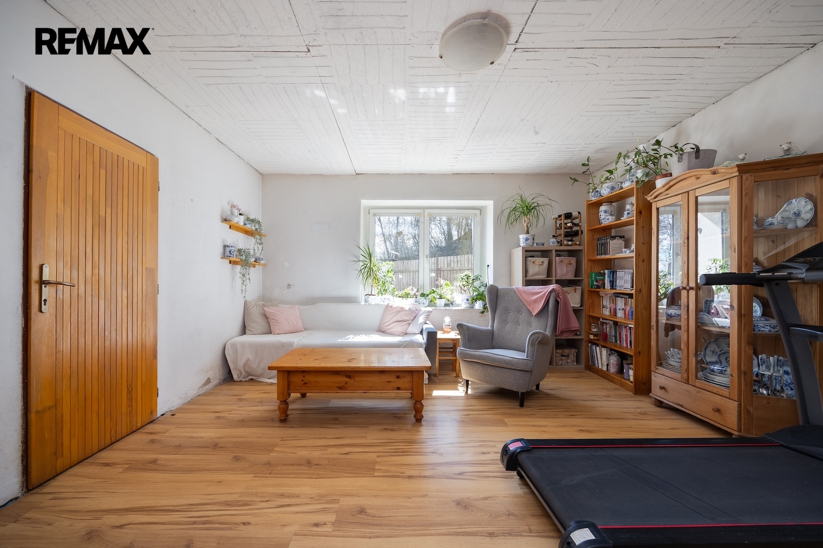 V přízemí se nachází obývací pokoj o velikosti 23 m², ložnice 14 m², kuchyň 15 m², koupelna s WC 6 m², samostatné WC 1,5 m², komora 2,5 m² a vstupní zádveří se schodištěm do podkroví o velikosti 8 m².