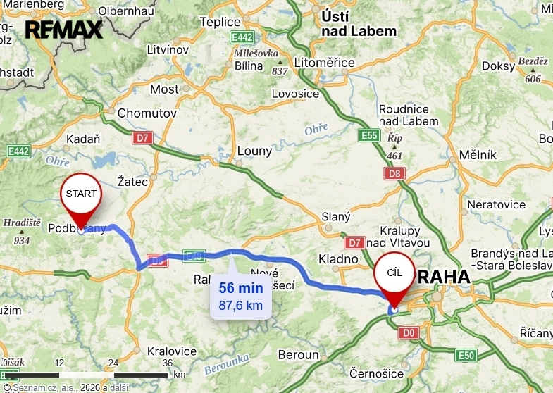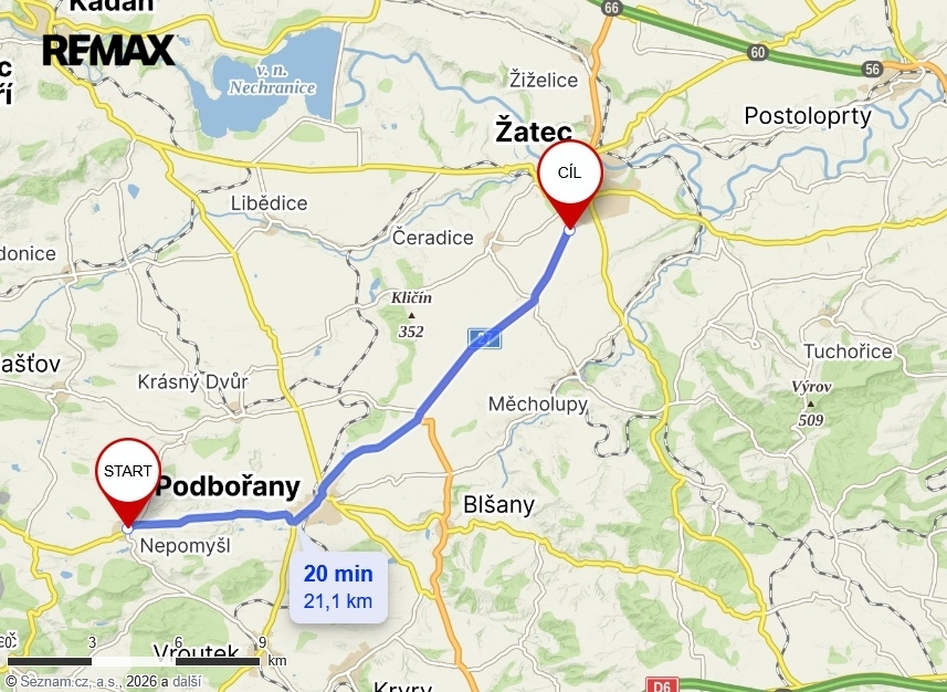 Díky blízkosti D6 je zajištěna dobrá dostupnost: Podbořany (6 min), Žatec (20 min), Kadaň (18 min), Karlovy Vary (40 min), Klínovec do 1 hodiny.