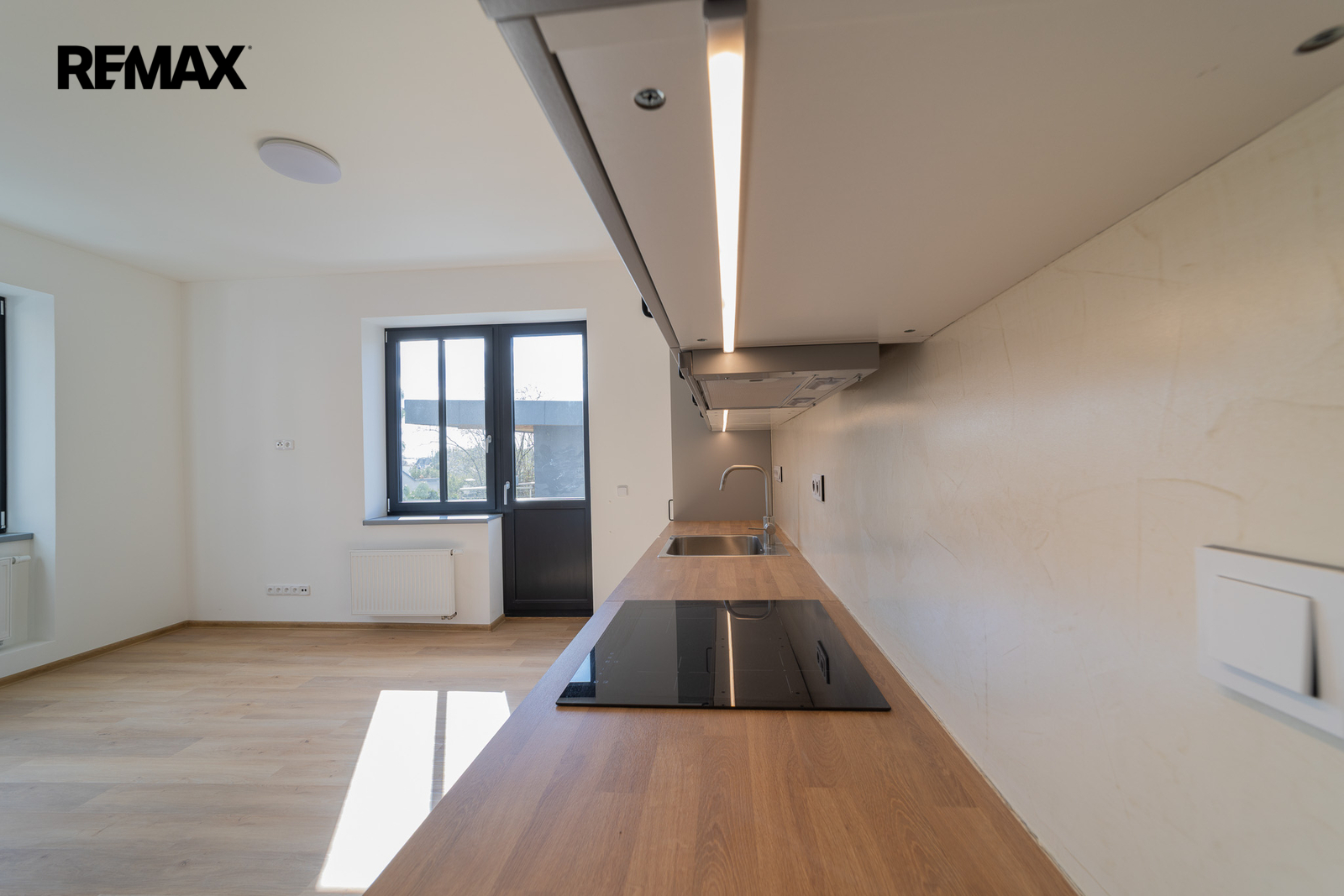 – nová kuchyňská linka s vestavnými spotřebiči(trouba, deska, myčka, digestoř)