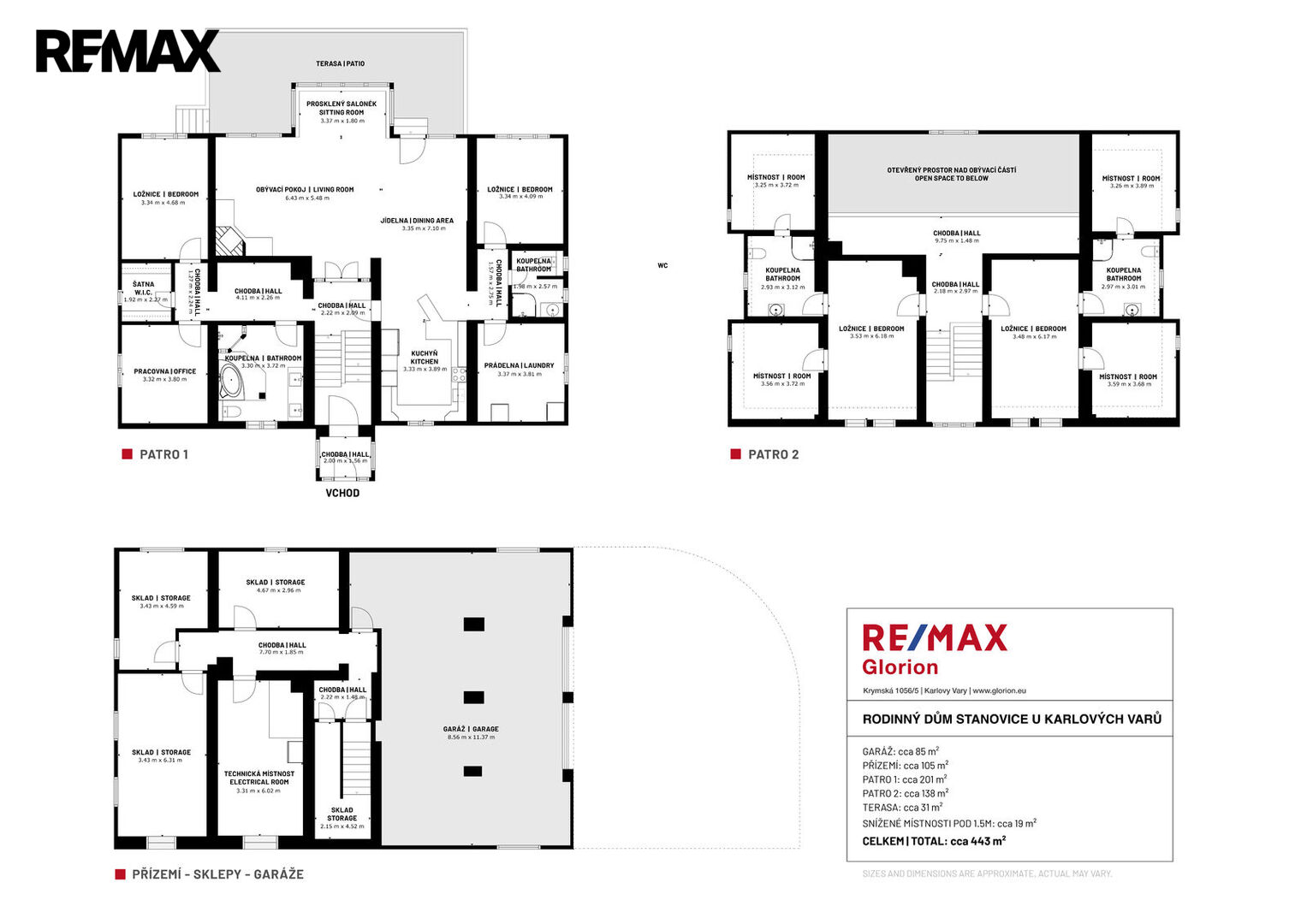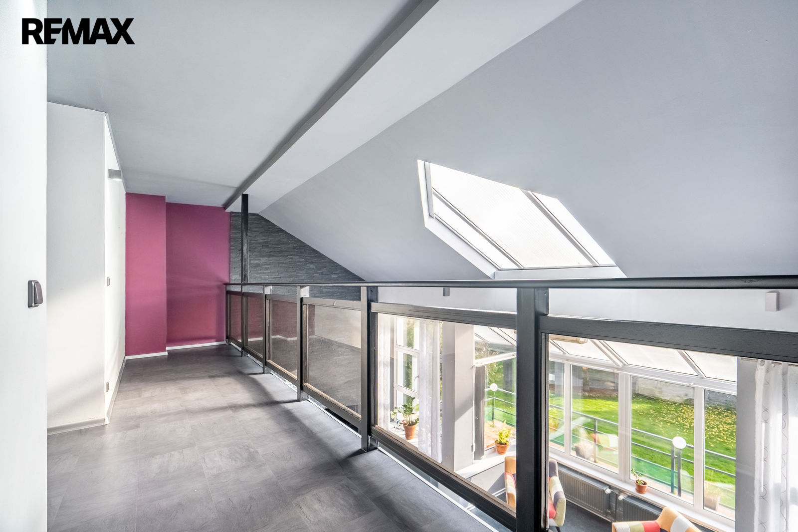 V patře se nacházejí dva dispozičně identické prostory. Každý z nich nabízí ložnici s vlastní koupelnou a šatnou a další místnost, kterou lze využít jako pracovnu nebo ji případně upravit na menší kuchyň. Díky tomu je možné ve druhém patře vytvořit dvě samostatné bytové jednotky.