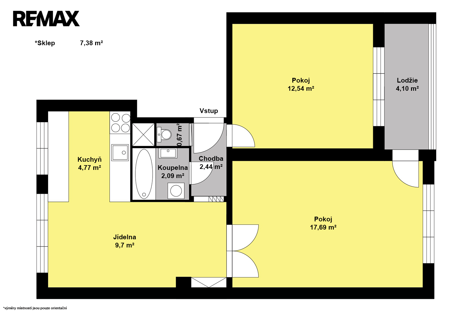 Součástí bytu je kuchyňská linka včetně spotřebičů (plynový sporák, digestoř) vestavěná skříň, rohová lavice, stůl, židle, lednice, mrazák, skříňky a zrcadlo v koupelně, pračka, skříň, komplet osvětlení, lodžie, která poskytuje příjemné místo k odpočinku a prostorný sklep, ideální pro uložení věcí.