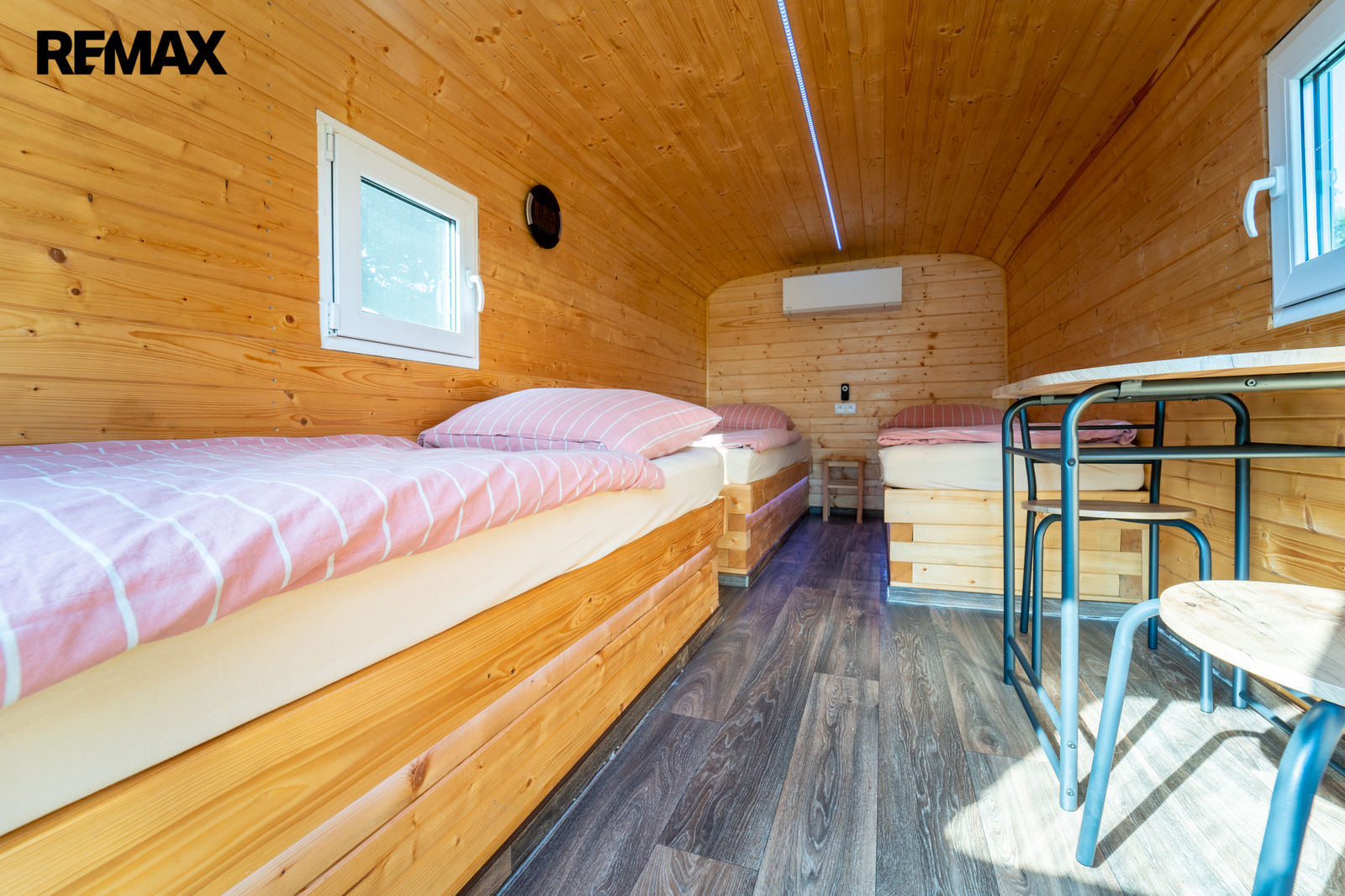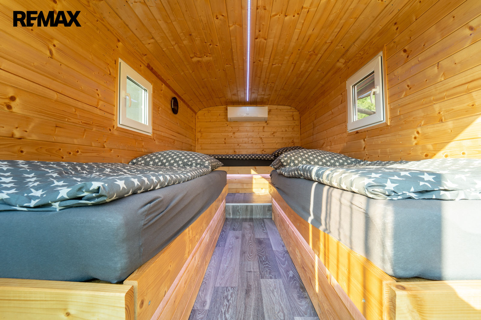 Spaní na akci zajišťují 4 x RETRO vojenské maringotky, každá má 3 x spaní a tak je 12 x lůžek s klimatizací, zásuvkou na nabíjení telefonu, plastovým oknem a led barevným podsvícením – pohodlí, které na první pohled není vidět.