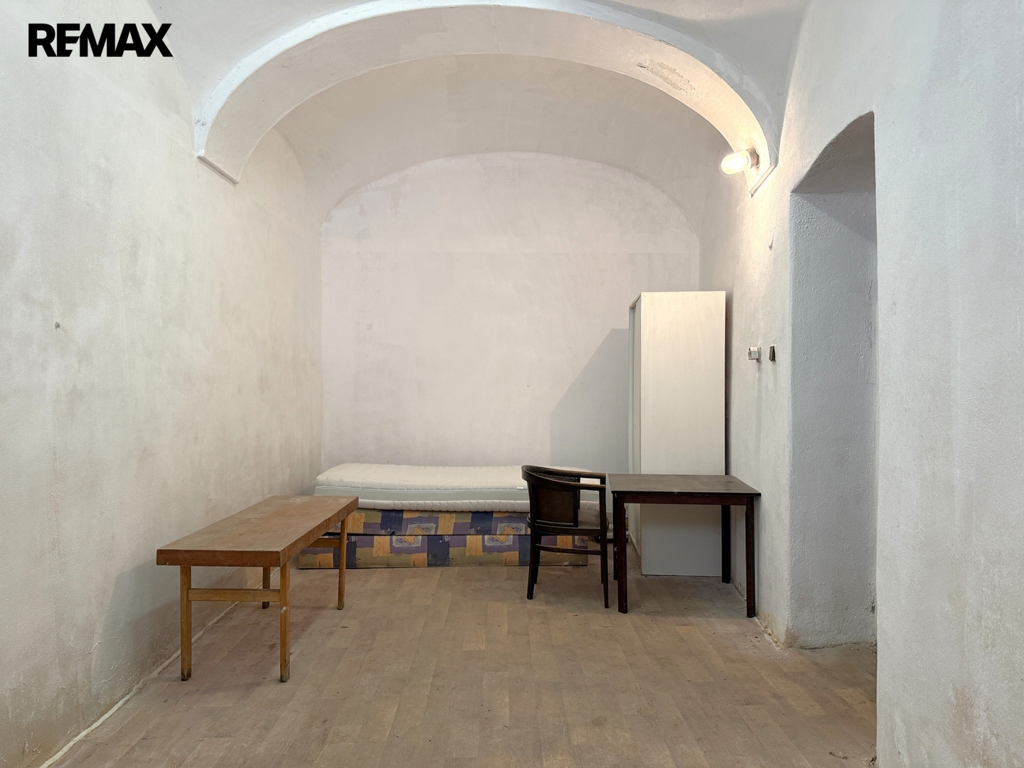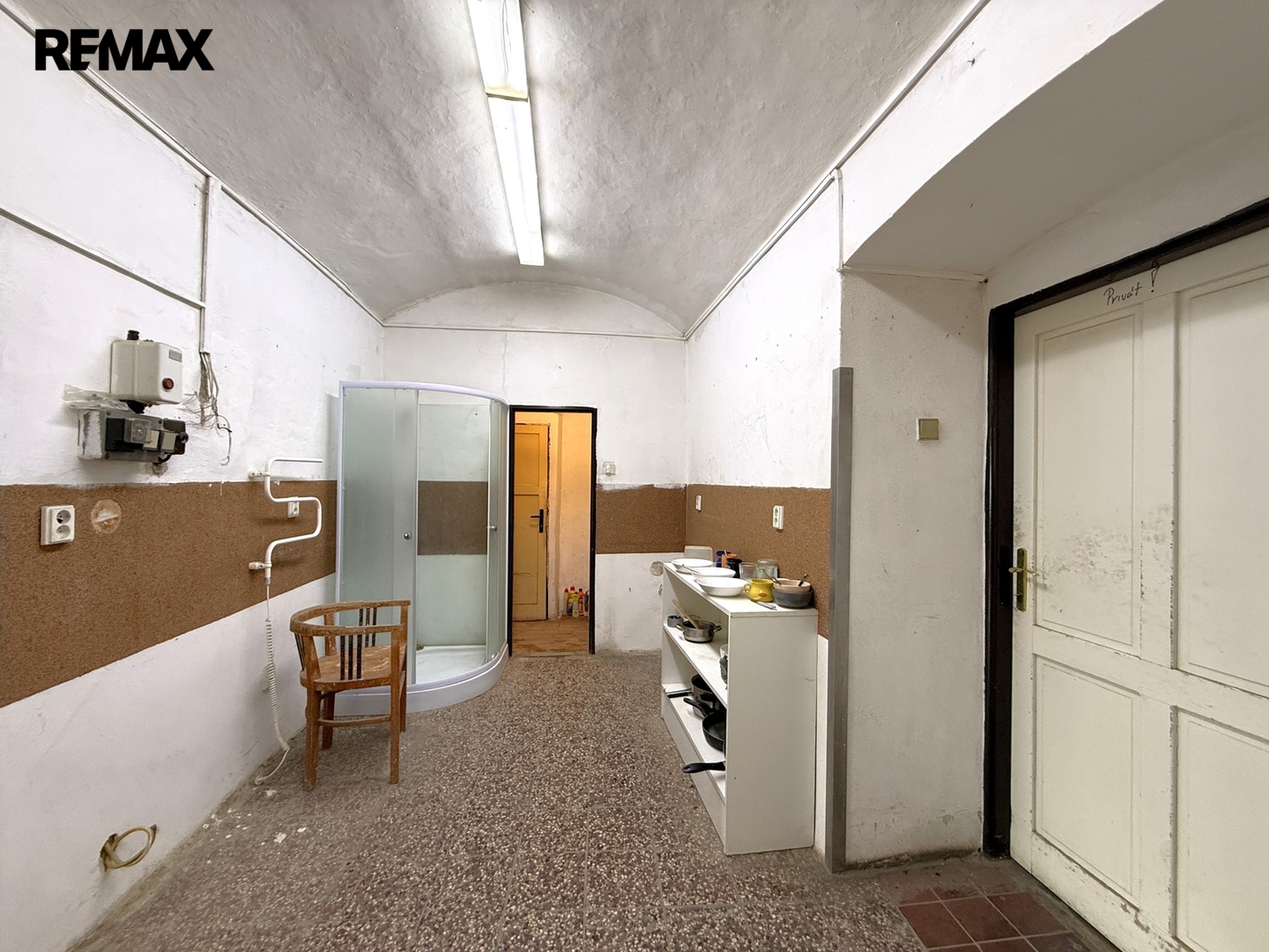 Třetí stavba ve dvoře je samostatně stojící dvoupodlažní dům s pavlačí. V přízemí se nachází technické zázemí a sklad (cca 75 m²) včetně kotelny s aktuálně nefunkčním kotlem na tuhá paliva. V patře je byt 3+1 (cca 79 m²), rovněž určený k rekonstrukci, vytápěný ústředním topením (aktuálně nefunkční kotel na tuhá paliva) a s odpojeným elektroměrem.
