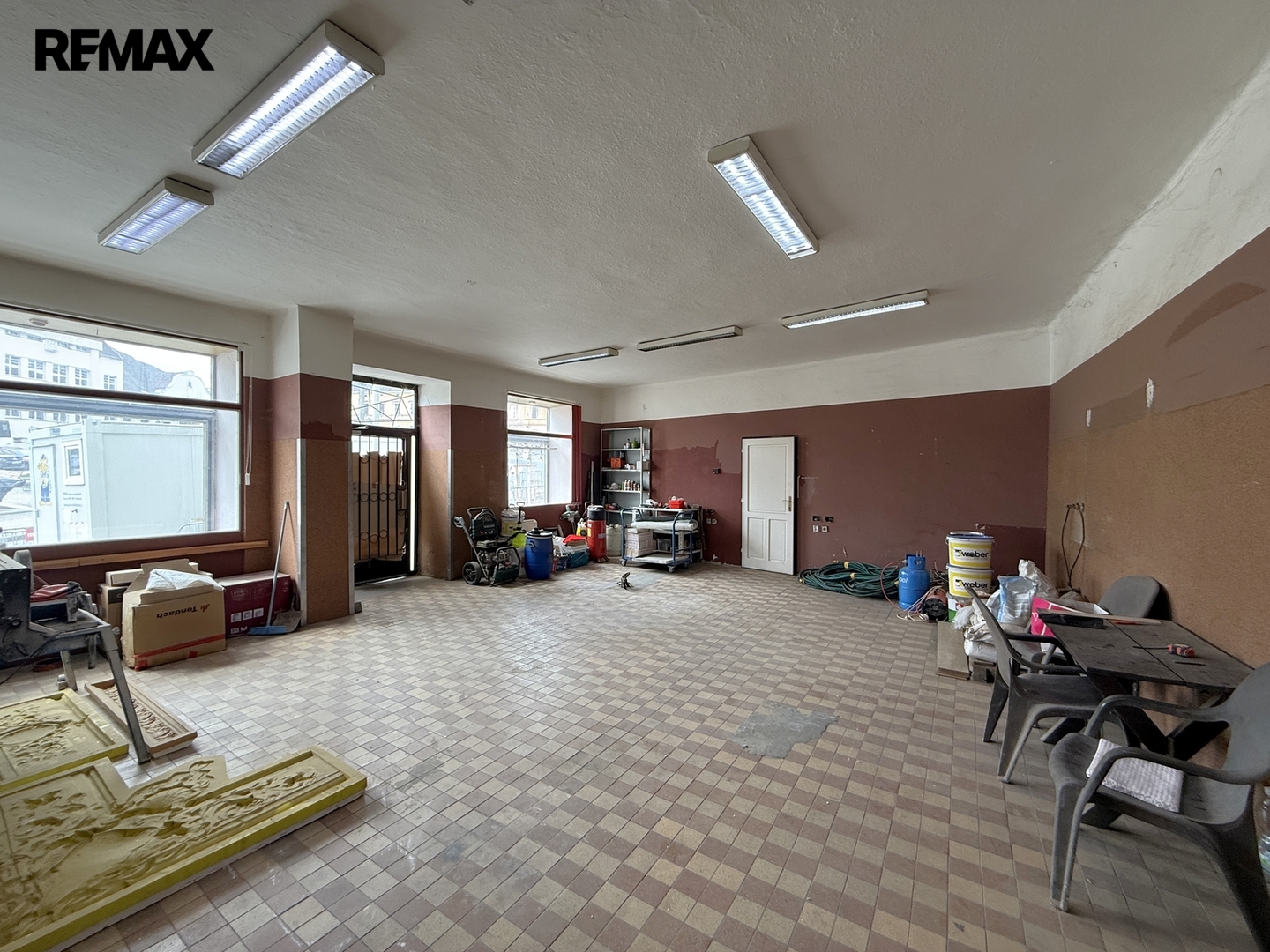 Hlavní dům je částečně podsklepený, přičemž podsklepení tvoří víceúrovňové sklepy, má dvě nadzemní podlaží, průjezd do dvora a prostornou půdu (cca 150 m²). V přízemí se nachází dva obchodní prostory – menší (cca 20 m²) bez zázemí a větší (cca 55 m²), dříve využívaný jako obchod a následně jako bistro, s navazujícím zázemím (cca 37 m²).
