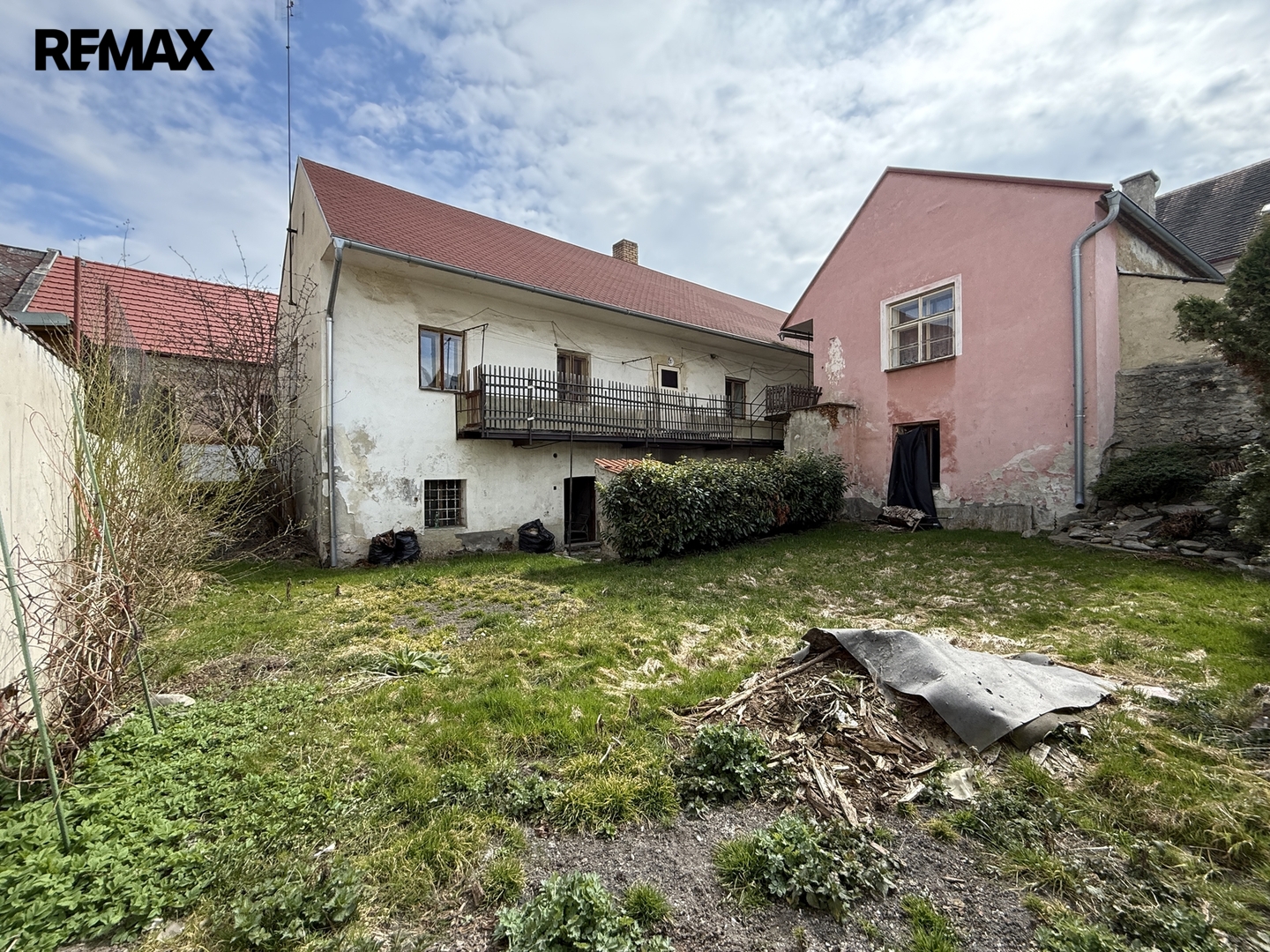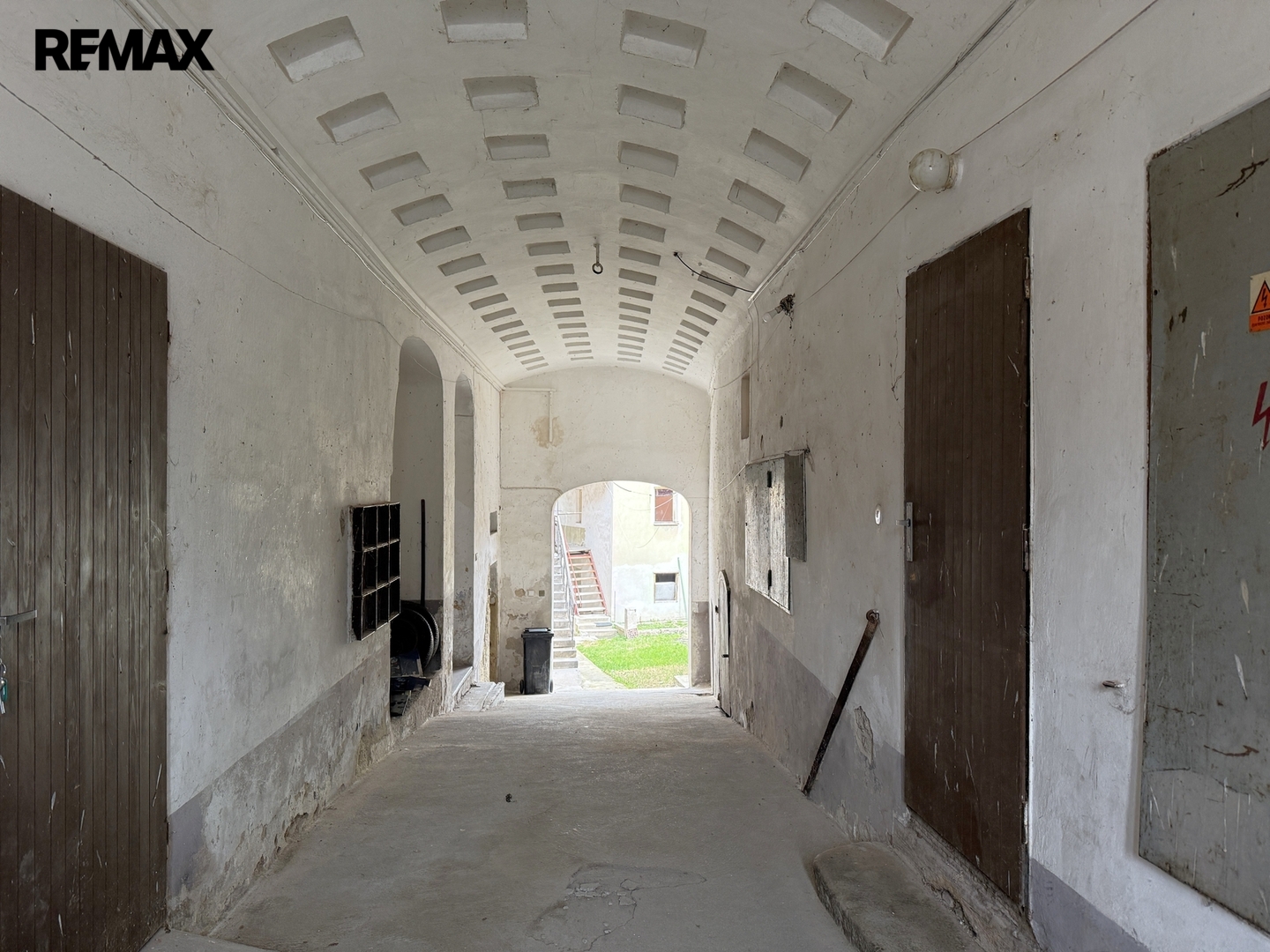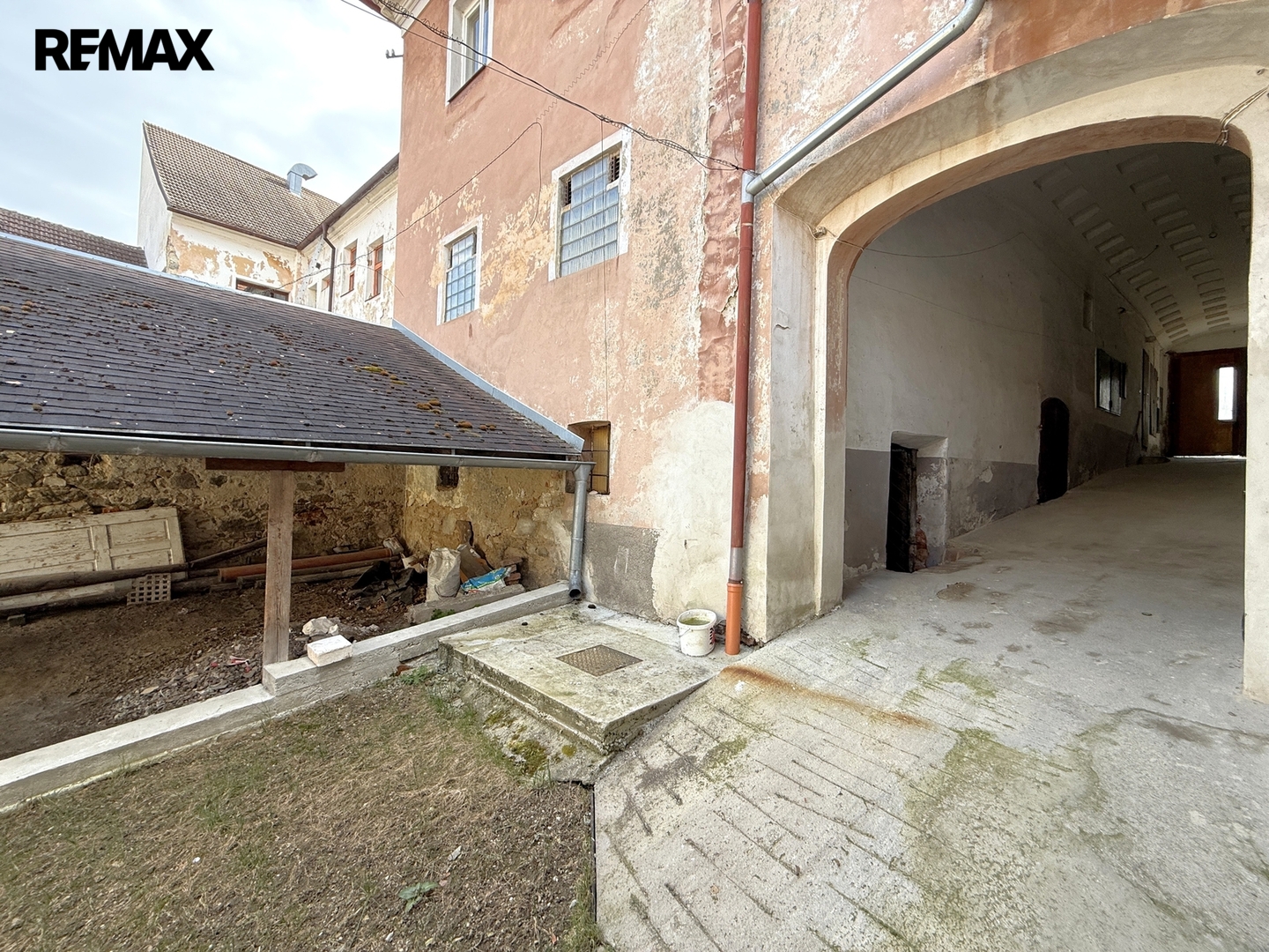 Navazující dvoupodlažní pavlačový objekt ve dvoře nabízí v přízemí nebytové prostory (cca 80 m²) sloužící ke skladování a technickému zázemí. V patře jsou dvě bytové jednotky – menší byt 1+1 (cca 33 m²), vytápěný ústředním topením s elektrickým kotlem, který byl v loňském roce kompletně modernizován, a větší byt 2+1 (cca 52 m²), vytápěný elektrickými přímotopy, v původním stavu k rekonstrukci.