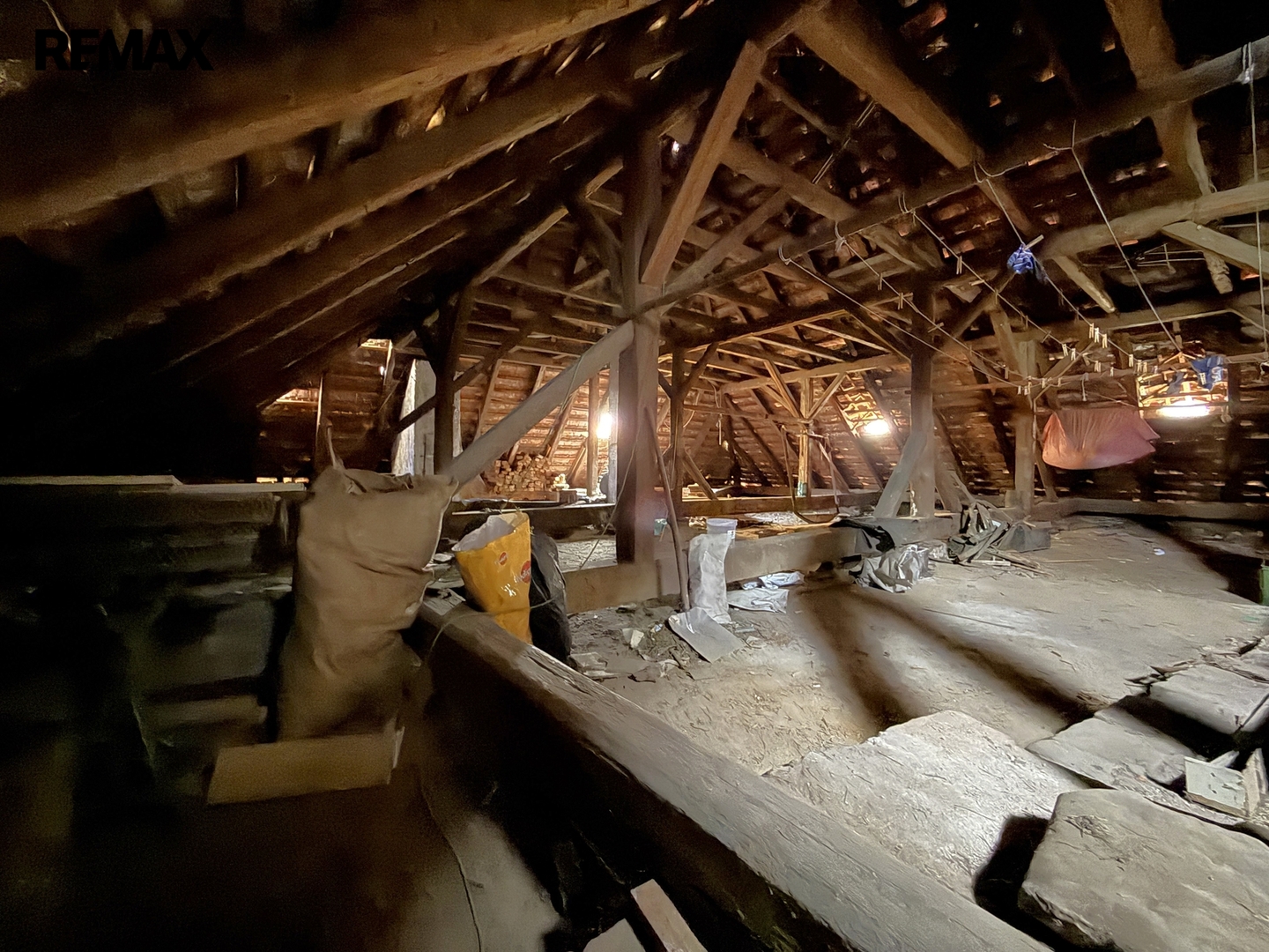 V patře je bytová jednotka o dispozici 2+1 (cca 98 m²), vytápěná akumulačními kamny. Dále se zde nachází prostorná chodba (cca 22 m²), další jednotka s chodbou a dvěma pokoji (cca 48 m²) bez koupelny, WC a rozvodů vody, vytápěná kamny na tuhá paliva, a vstup na půdu.