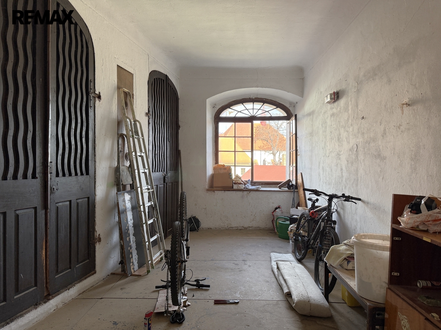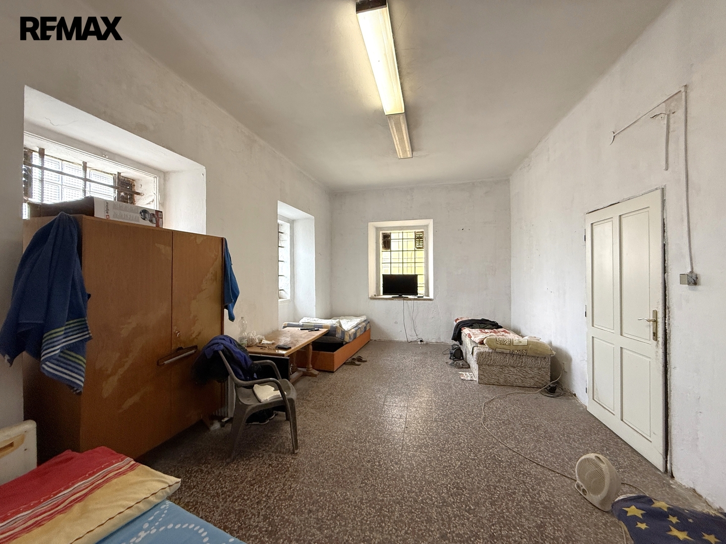 Samostatný dvoupodlažní objekt ve dvoře disponuje v přízemí technickým zázemím (cca 75 m²) a v patře bytem 3+1 (cca 79 m²), rovněž určeným k rekonstrukci.
