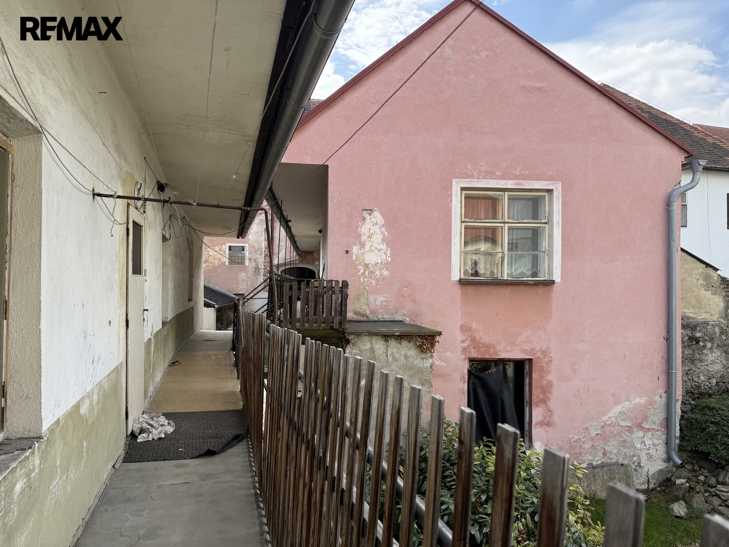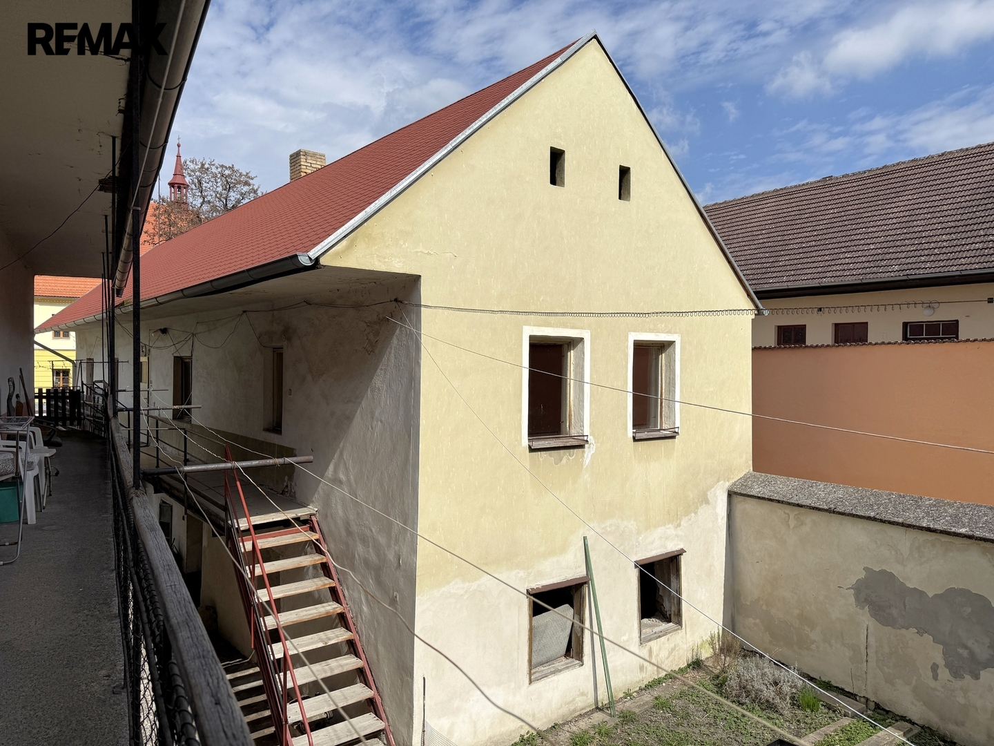 Dvorní pavlačový objekt nabízí v přízemí skladové a technické prostory (cca 80 m²) a v patře dvě bytové jednotky – 1+1 (cca 33 m², po modernizaci) a 2+1 (cca 52 m², k rekonstrukci).