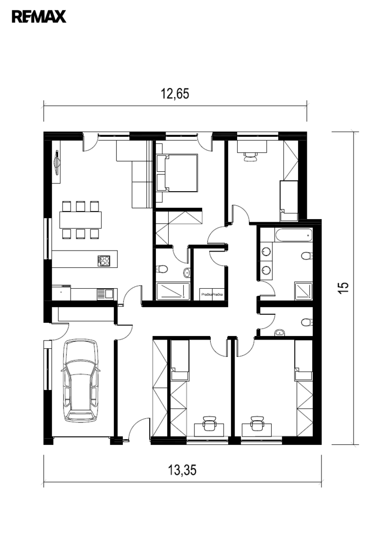 Pozemek má obdélníkový tvar a jeho velkou výhodou je jihozápadní orientace zahrady, která přímo vybízí k vybudování relaxační zóny s terasou a bazénem. Pro lepší představu jsme pro vás připravili vizualizaci moderního přízemního domu o dispozici 5+kk s garáží, která splňuje nároky na komfortní rodinné bydlení.
