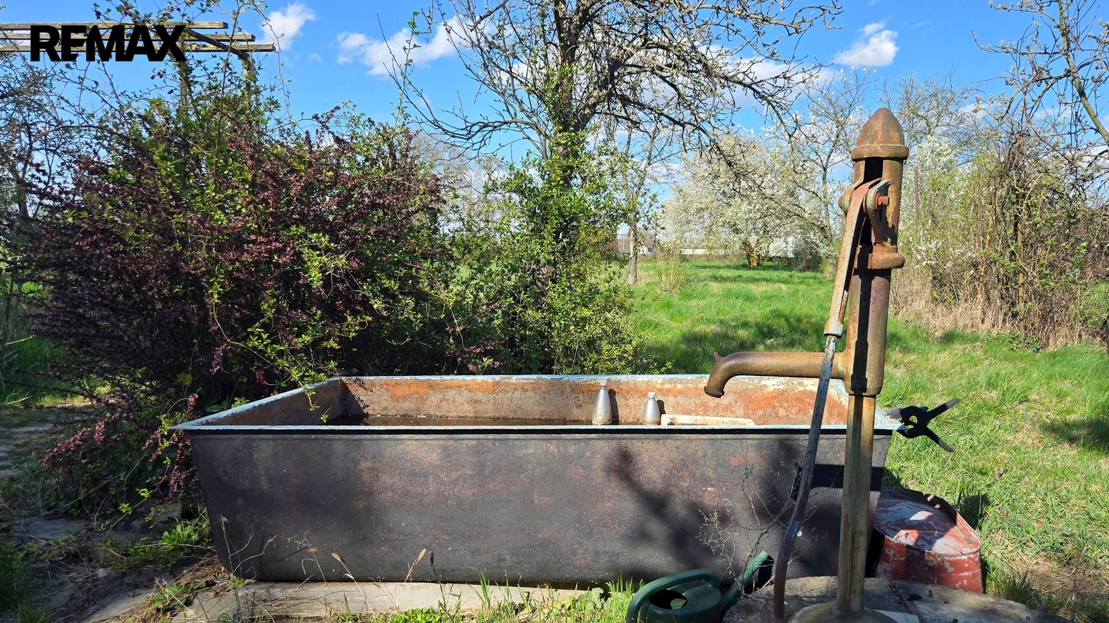 Na zahradu není přivedena elektřina ani voda, ale je zde vrtaná studna.