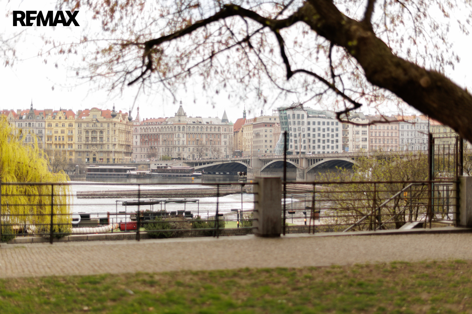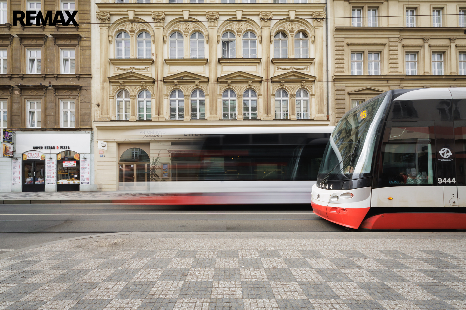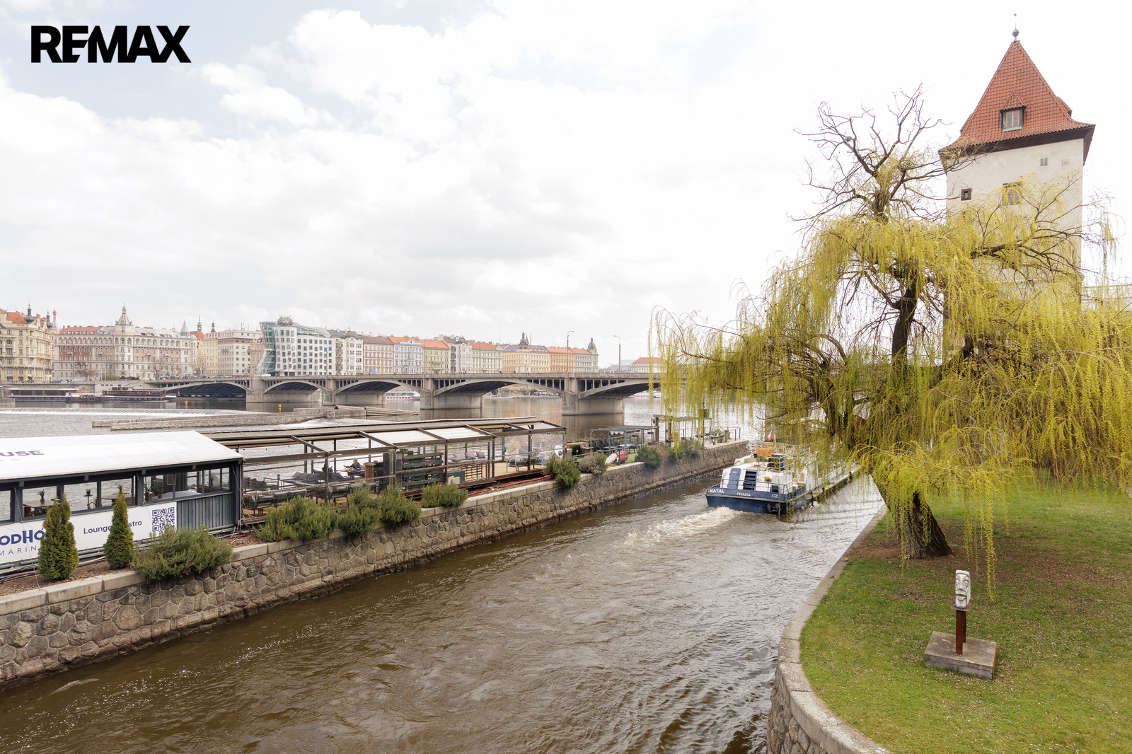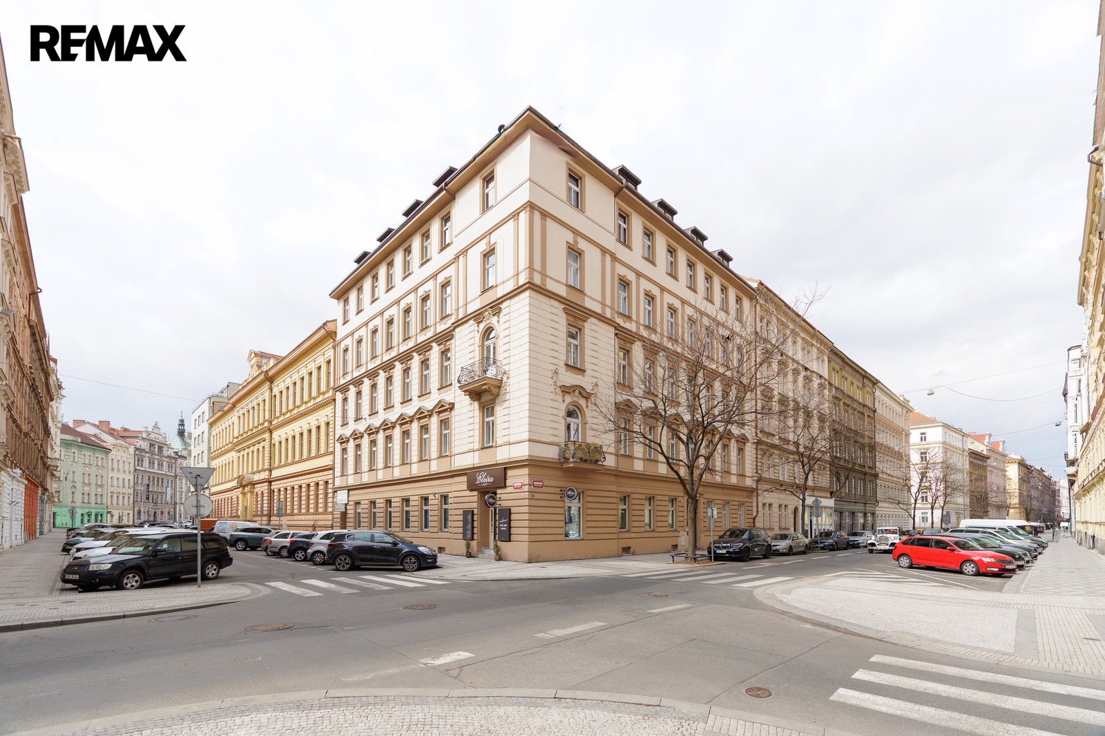 The apartment is situated on the second floor of a well-maintained historic 19th-century building on Zborovská Street in Smíchov, just moments from the Vltava riverbank and Janáčkovo nábřeží, with excellent public transport connections including metro, tram, bus.