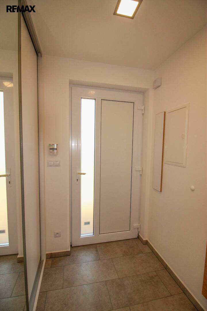 V zádveří instalovaná vestavěná skříň.