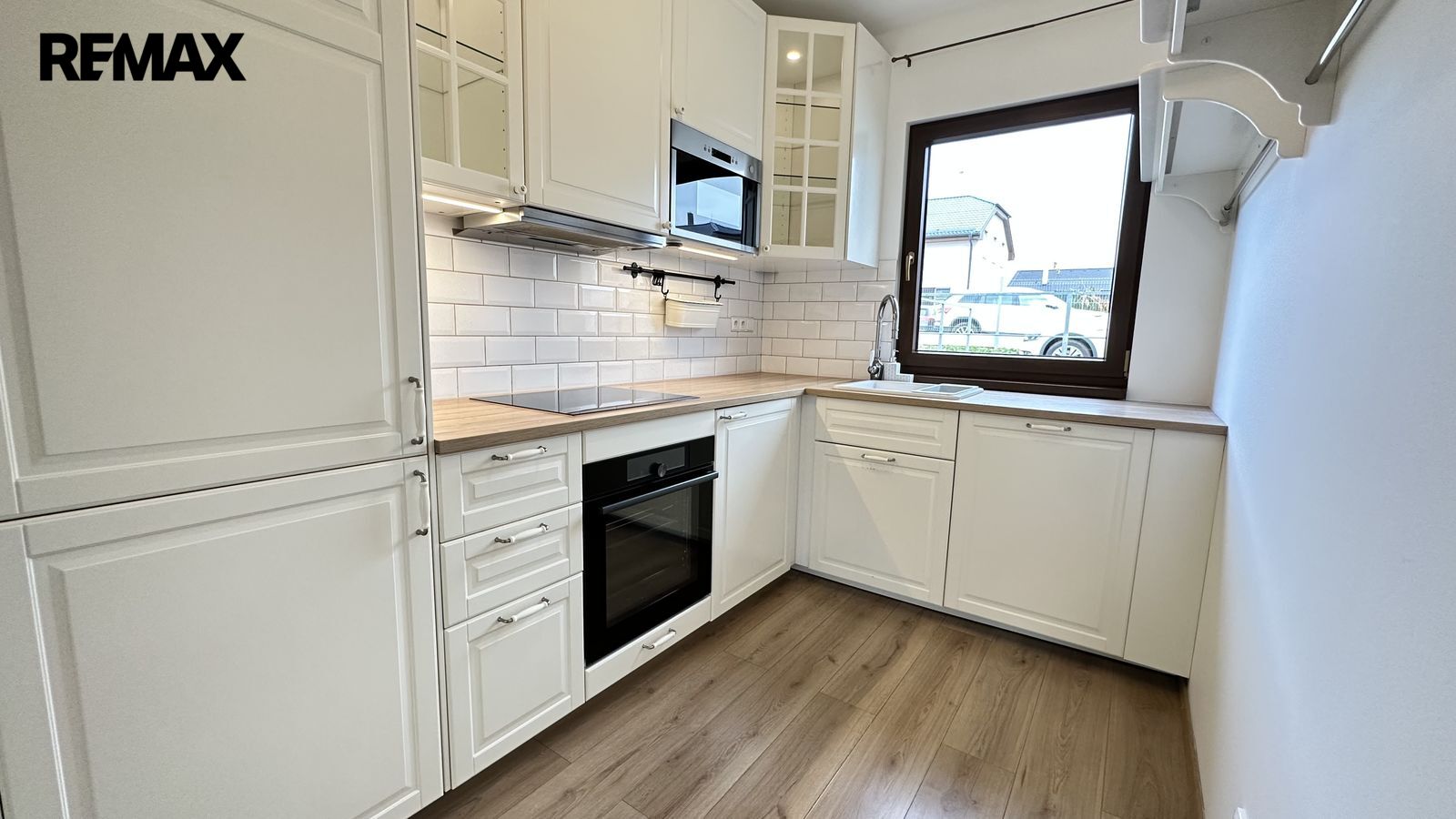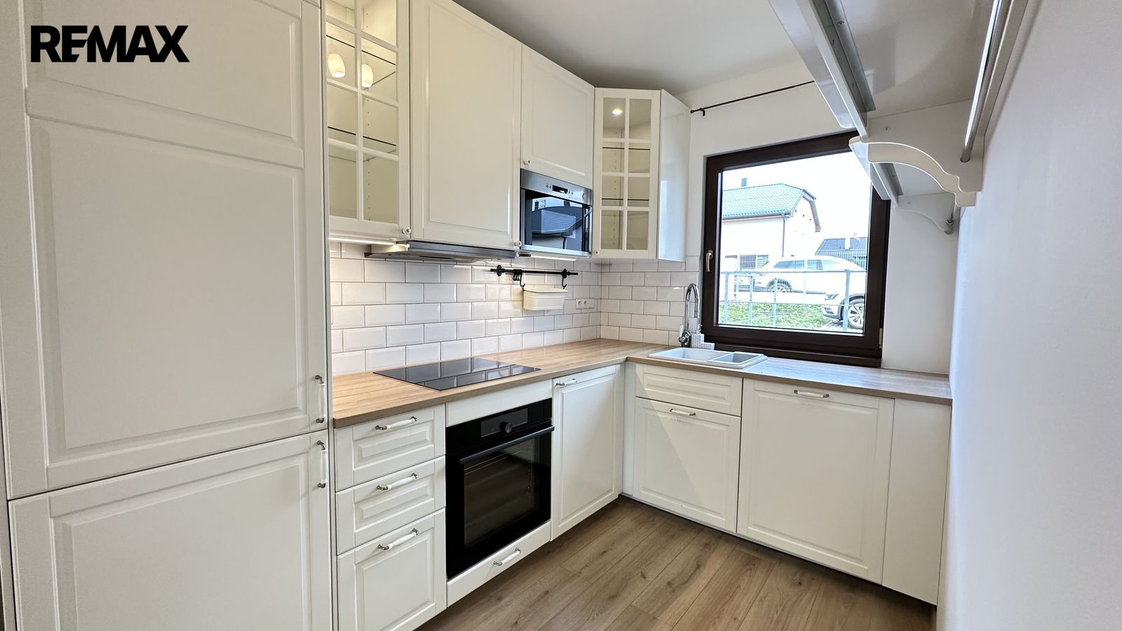 Nabízíme k pronájmu (dům) bytovou jednotku (80 m2) o dispozici 3+kk, s vlastní rohovou zahrádkou v novostavbě rodinného domu v Králově Dvoře - Levín, ul. Větrná č.p. 433.