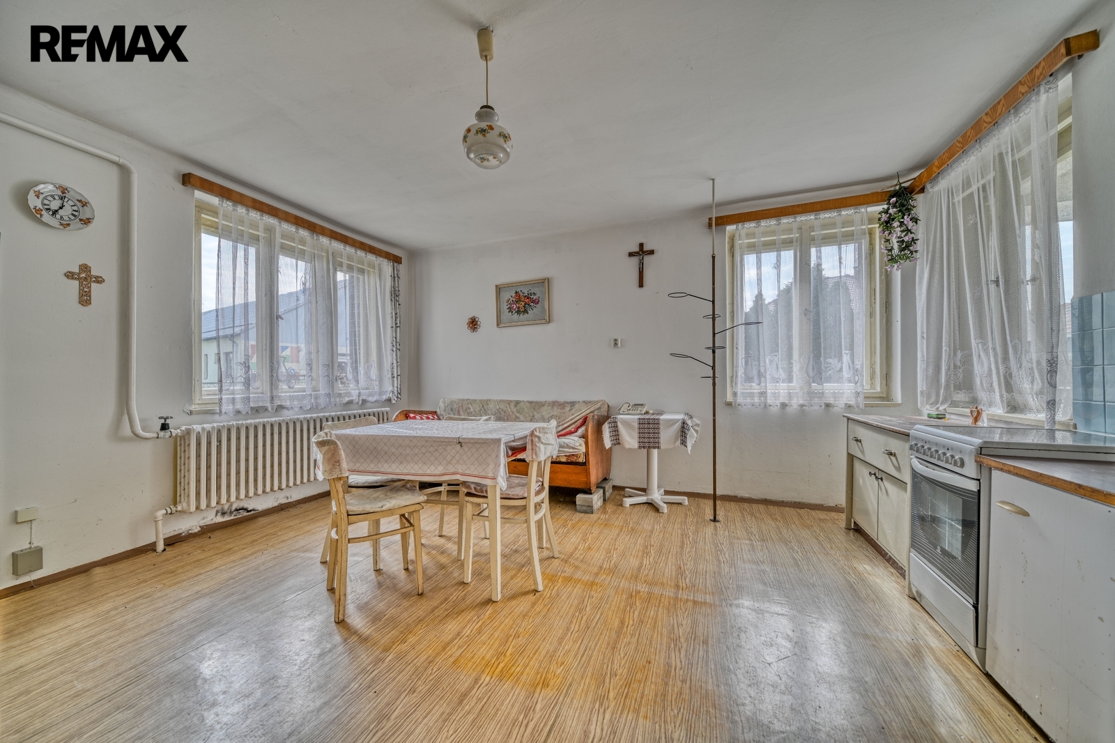 Dovolujeme si Vám nabídnout k prodeji prostorný rodinný dům o dispozici 5+kk s užitnou plochou cca 140 m², situovaný na oploceném a rovinatém pozemku o rozloze 3 938 m² v klidné obci Kněžice u Městce Králové. Zděný, nepodsklepený dům nabízí praktické dispoziční řešení vhodné pro rodinné bydlení i rekreaci. Na pozemku se nachází vzrostlé stromy, které zajišťují příjemné soukromí a dotvářejí venkovskou atmosféru s širokým potenciálem dalšího využití. Dům má střechu krytou taškami a plechem, dřevěná okna a podlahy kombinující parkety a dlažbu. Elektroinstalace je původní (hliník), k dispozici je napětí 230/400 V. Nemovitost je napojena na obecní vodovod, odpad je řešen septikem. Dispozice: Přízemí tvoří obývací pokoj s kuchyňským koutem (22,5 m²) a komorou, dva pokoje (20,33 m² a 14,58 m²), dvě koupelny (10,12 m² a 3,1 m²), samostatné WC, technická místnost a dvě chodby, z nichž jedna vede po schodišti do patra. V patře se nacházejí dva pokoje (14,82 m² a 15,83 m²) se vstupem do půdního prostoru. Na obytnou část navazuje starší hospodářská část (sklady apod.). Součástí pozemku je také zděná stodola s garáží a další rodinný dům určený k demolici, což nabízí zajímavý investiční potenciál či možnost další výstavby. Občanská vybavenost a doprava: Obec Kněžice disponuje základní občanskou vybaveností (mateřská škola, škola, obchod, restaurace, obecní úřad). Kompletní služby jsou dostupné v nedalekém Městci Králové. Obec Kněžice je navíc známá jako energeticky soběstačná obec využívající bioplynovou stanici a centrální vytápění z obnovitelných zdrojů. Dopravní spojení zajišťují autobusové linky, výhodná je také dostupnost do Poděbrad, Nymburka a následně do Prahy. Tato nemovitost představuje ideální volbu pro ty, kteří hledají klidné bydlení s velkým pozemkem a potenciálem dalšího rozvoje. Pro více informací nebo prohlídku mě neváhejte kontaktovat. Prodávající si vyhrazuje právo vybrat kupujícího na základě jím zvolených kritérií.