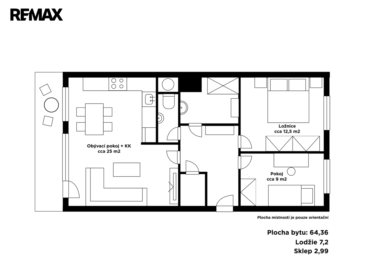 K bytu náleží sklepní kóje o velikosti 2,99 m² a praktická komora (1,57 m²) umístěná přímo na chodbě před bytem, což zajišťuje dostatek úložného prostoru.