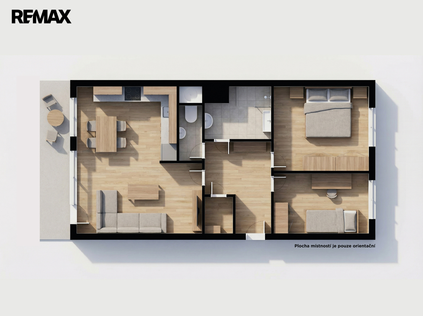 Byt dále disponuje dvěma samostatnými pokoji orientovanými na východ, které mohou sloužit jako ložnice, dětský pokoj nebo pracovna. Výhodou je praktické dispoziční řešení, kdy se do všech místností vstupuje samostatně z prostorné předsíně.