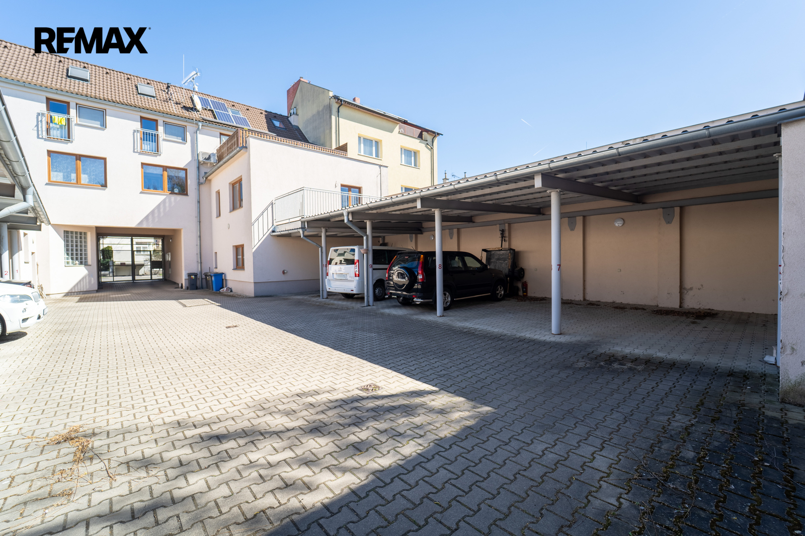 Součástí nabídky může být také parkovací místo v uzavřeném areálu domu za vjezdovou bránou. Nejedná se o pouhý spoluvlastnický podíl, ale o samostatný pozemek o výměře 18 m², což představuje praktickou i právně přehlednou výhodu. Parkovací stání má navíc světlou výšku cca 2,9 m. Pro využití nebytového prostoru může jít o velmi zajímavý a hodnotný benefit, nikoli však o podmínku koupě.