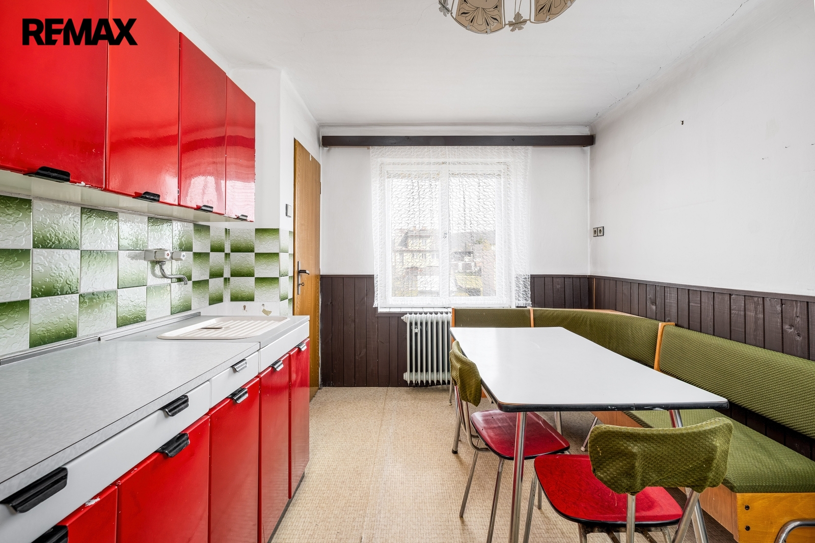 V prvním patře domu je vstupní chodba (veranda), hlavní chodba se vstupy do bytu a do zbývajících podlaží domu, prostorný obývací pokoj, další 2 samostatné pokoje, kuchyně a koupelna se sprchovým koutem, umyvadlem a WC. Tyto prostory byly v minulosti částečně rekonstruovány (koupelna, kuchyň).