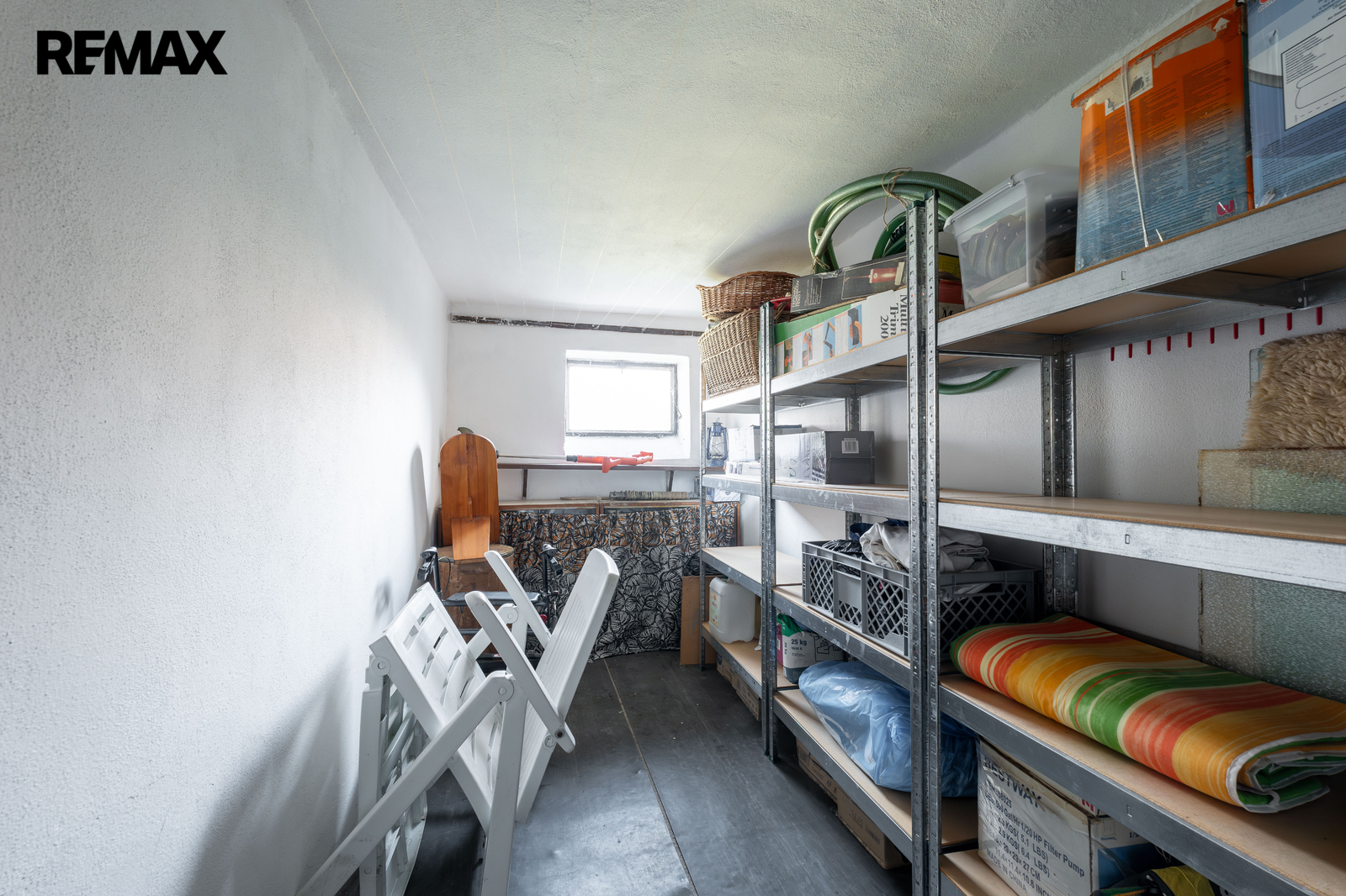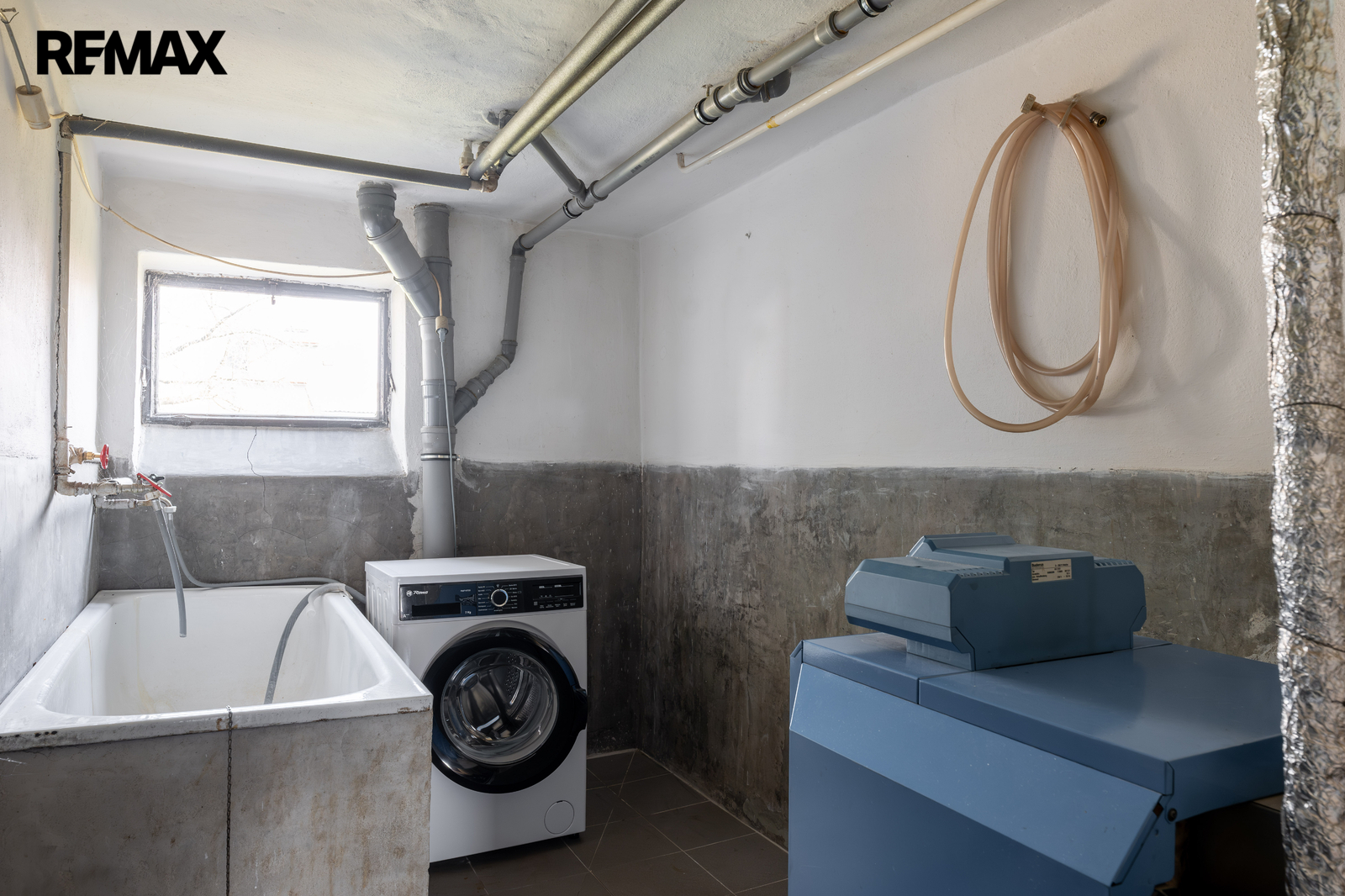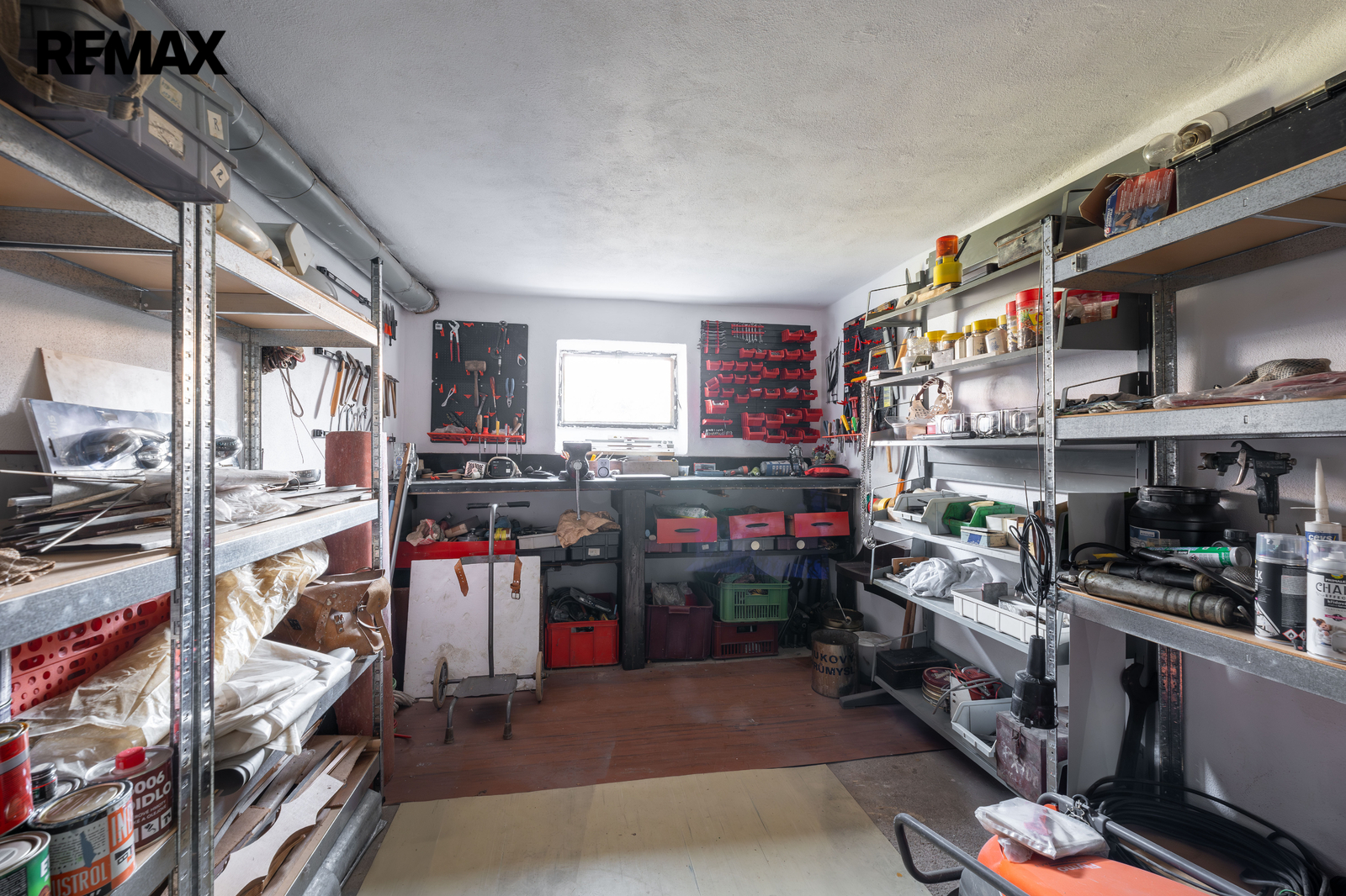 V přízemí rodinného domu se nachází technické a skladovací prostory přístupné z hlavní chodby domu, z garáže a také dalším samostatným vchodem ze zahrady. Dispozice tohoto podlaží sestává z garáže, technické místnosti ve které je plynový kotel (Buderus) a pračka + vana, dílny a dalších 2 samostatných místností využívaných jako úložné prostory.
