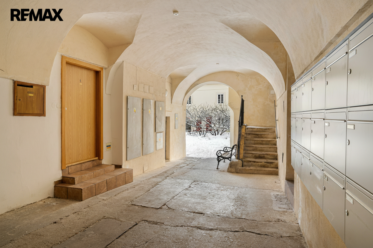 Výhodou je mj. samostatná uzamykatelná vstupní chodba společných prostor domu, ze které vede vstup pouze do tohoto bytu.