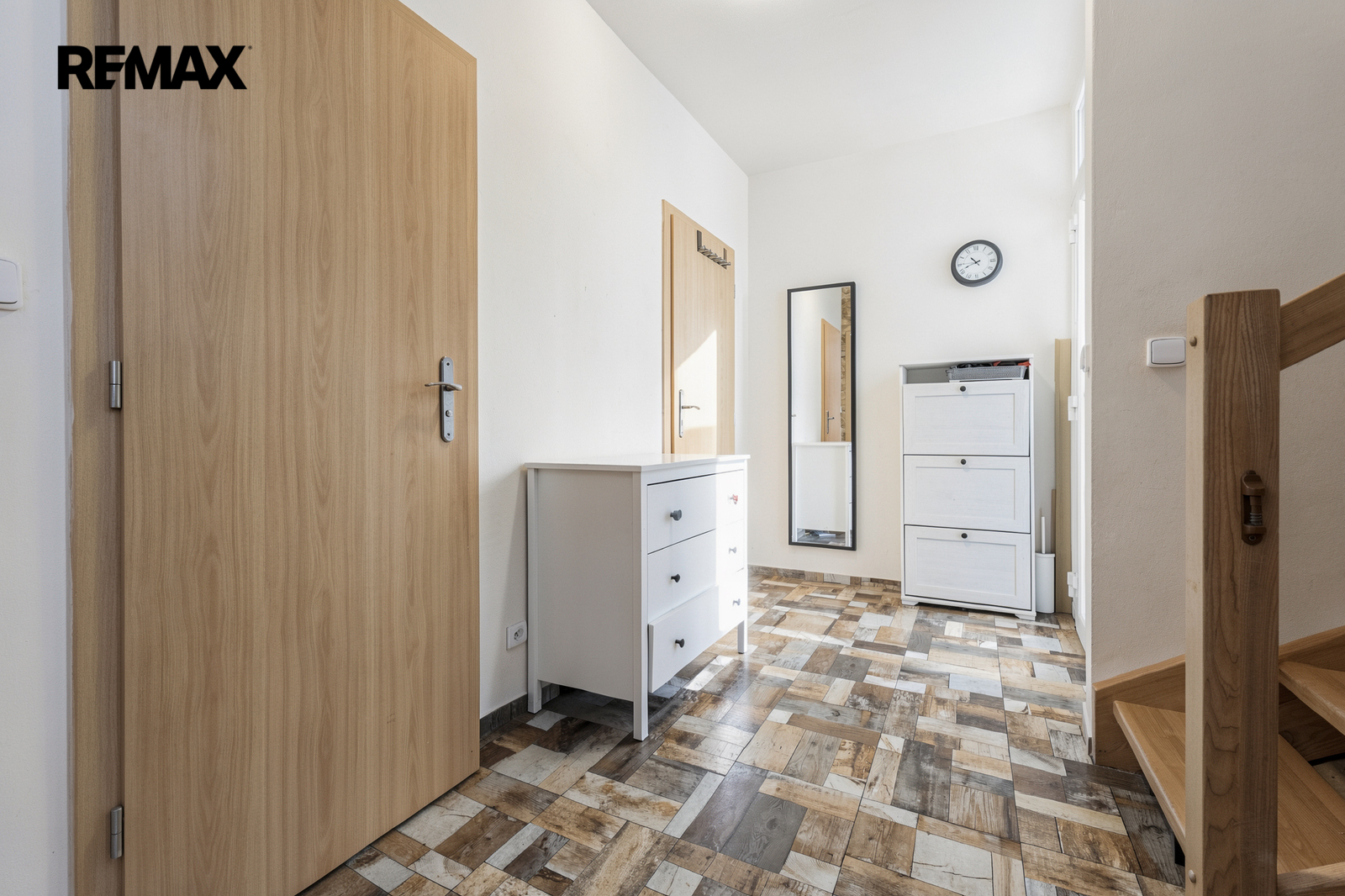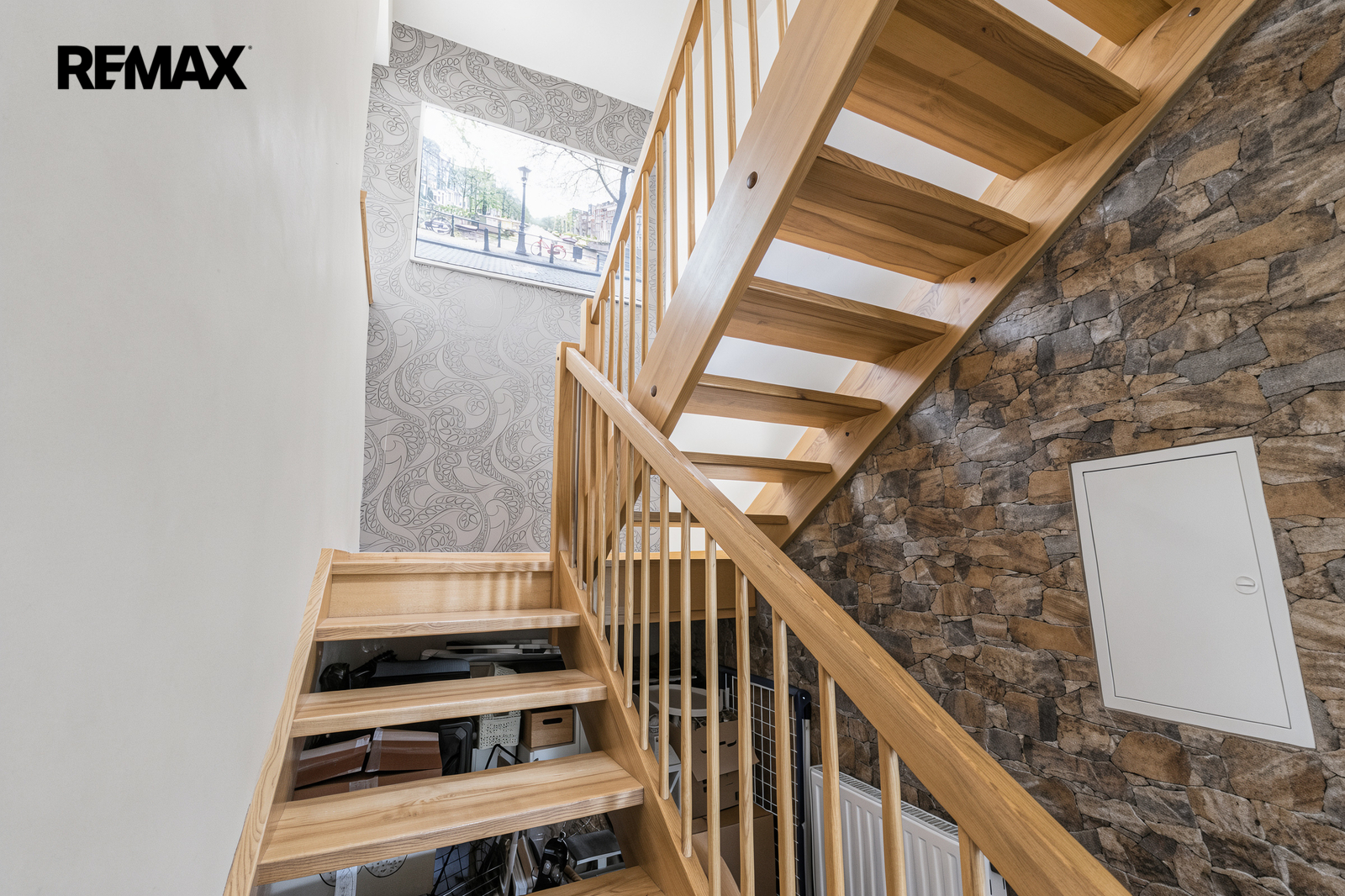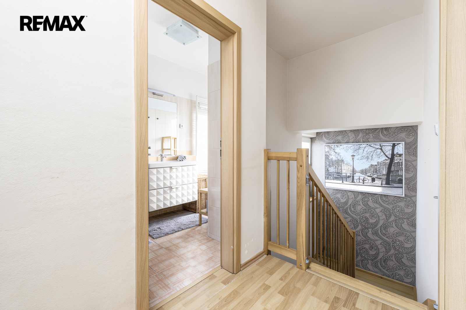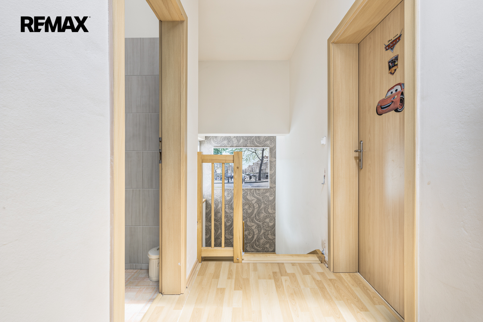 V prvním patře jsou situovány tři samostatné ložnice, které nabízejí dostatek soukromí pro všechny členy domácnosti. Dále zde naleznete koupelnu vybavenou vanou. Dům je v dobrém stavu a připraven k okamžitému nastěhování bez nutnosti větších investic. Díky svému uspořádání a umístění je ideální volbou pro rodinné bydlení v klidném prostředí s dobrou dostupností do Prahy.