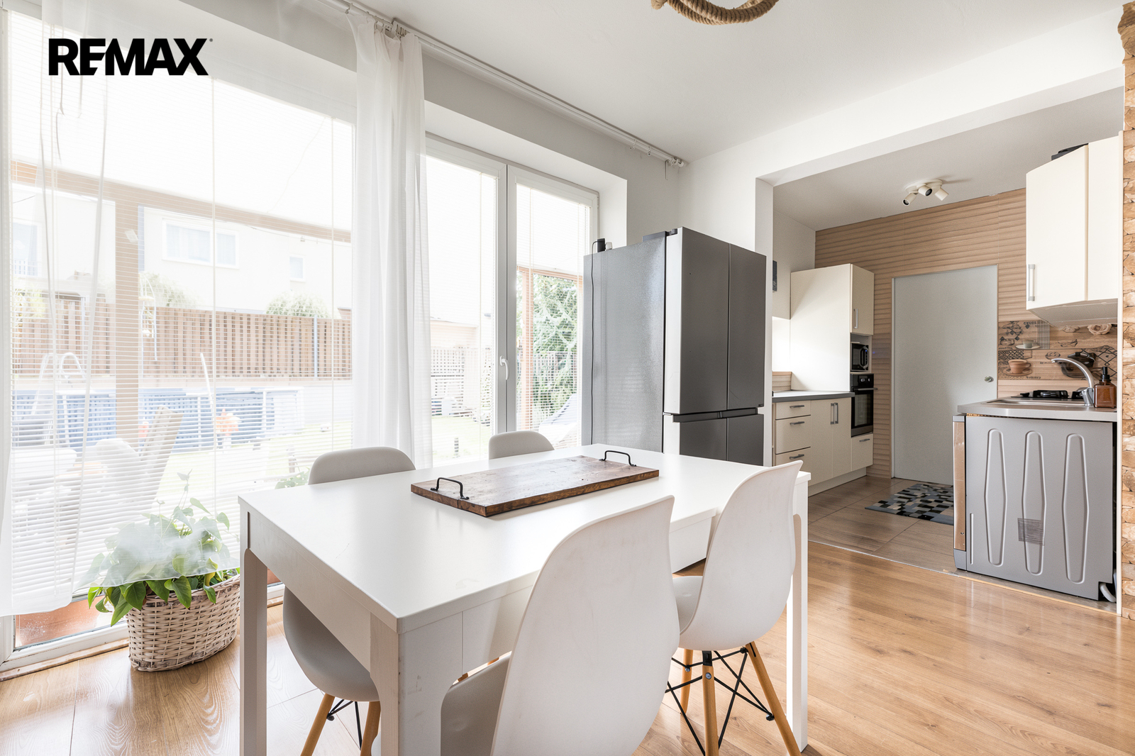 Nabízíme k prodeji řadový rodinný dům o dispozici 4+kk a celkové podlahové ploše 115 m², situovaný v klidné a vyhledávané obci Jenštejn. K domu náleží příjemná zahrada, zastřešené parkovací stání a praktický zahradní domek, který poskytuje dostatek úložného prostoru.