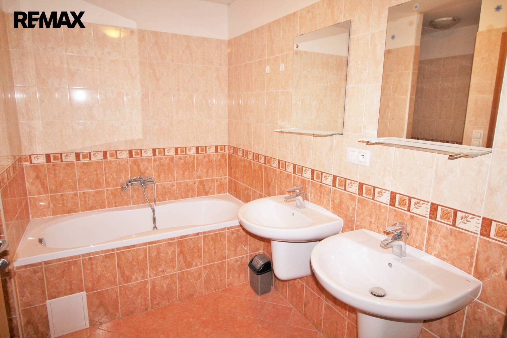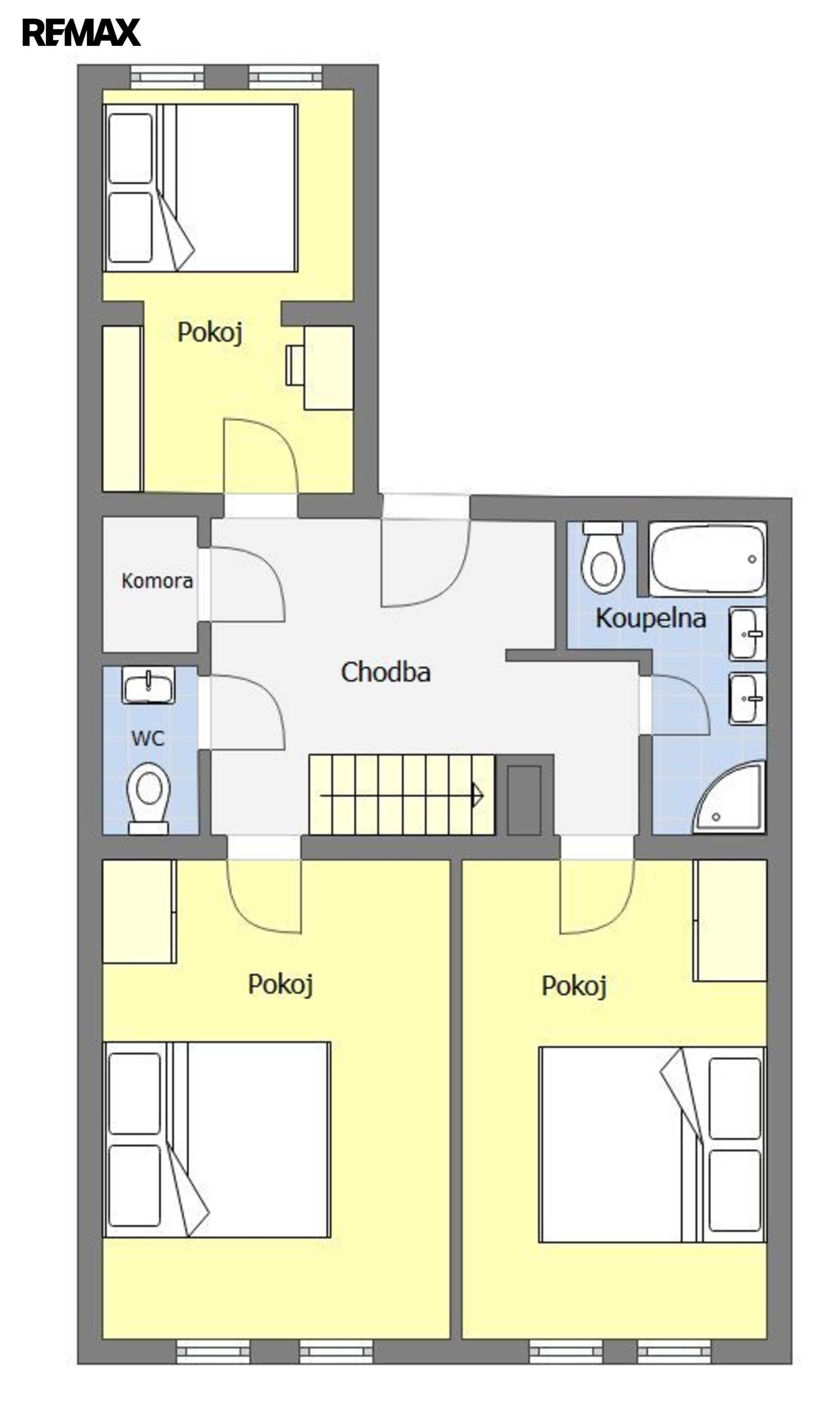 Celková plocha prodávaných prostor je 166m2. Ve spodní části mezonetu se nacházejí 3 samostatné neprůchozí pokoje, koupelna s vanou i sprchovým koutem, dvěma umyvadly a toaletou. Další toaleta s umyvadlem je jako samostatná místnost.