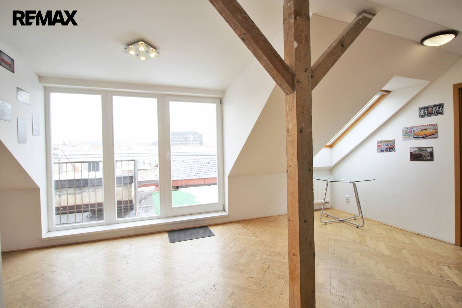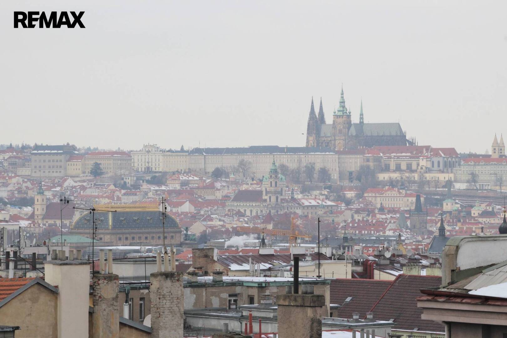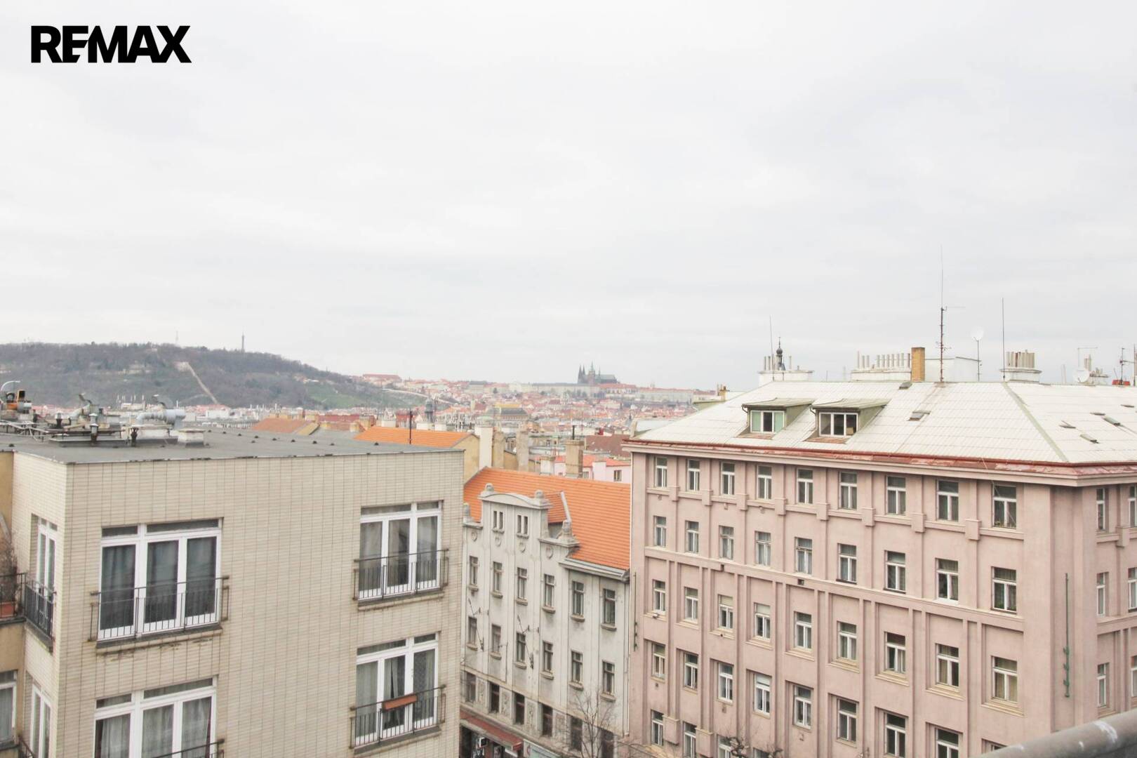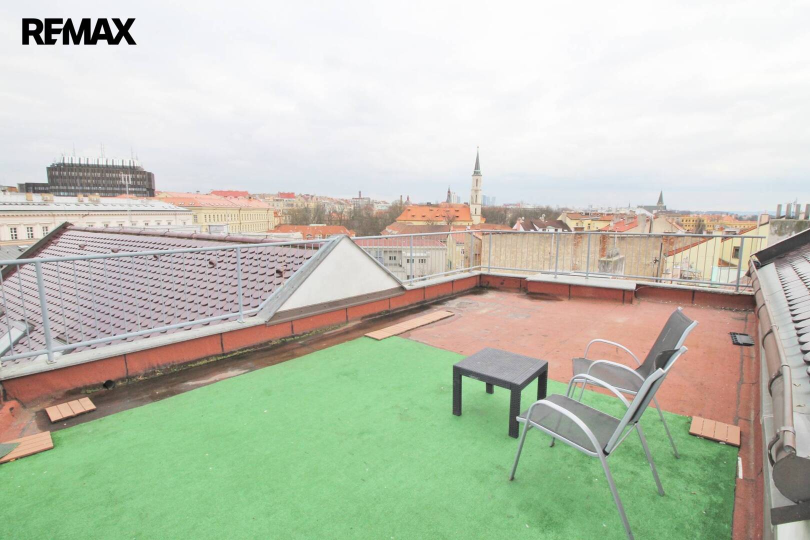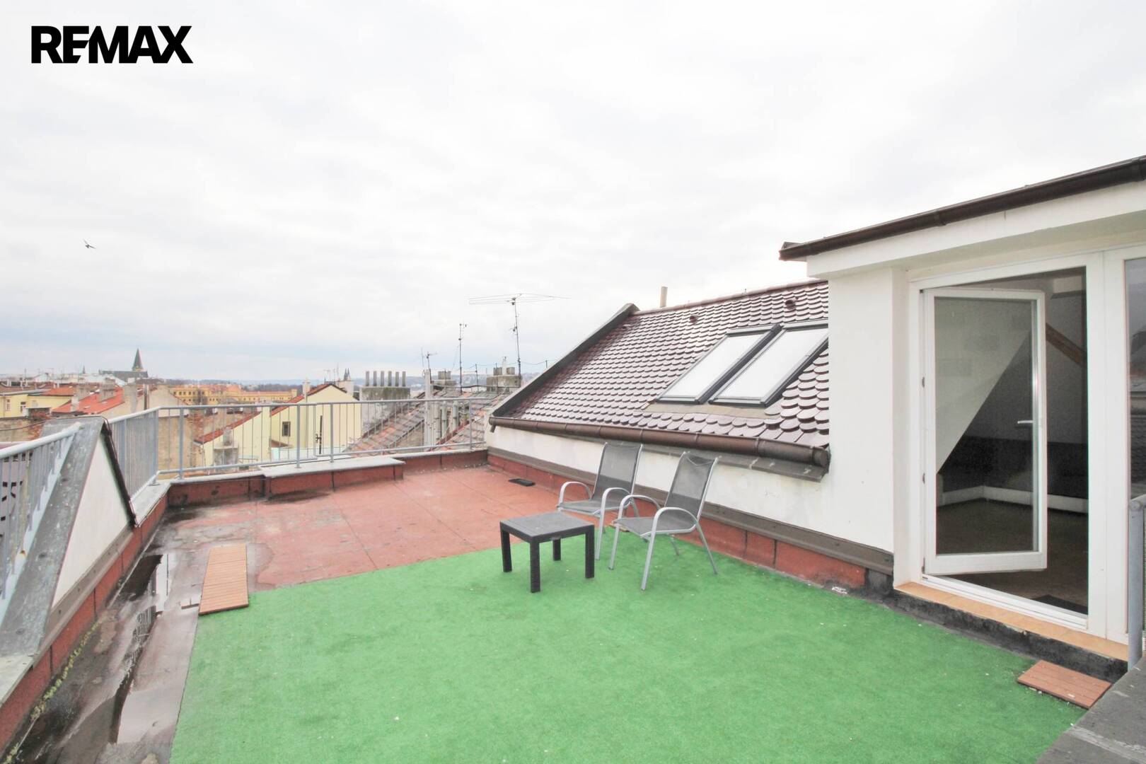K velké místnosti přiléhá terasa s krásným výhledem na Prahu. Vstup na ni je přes velkoplošné francouzské okno. Jelikož jsou prostory situovány do vnitrobloku, neruší tam nikoho hluk z ulice. Dané prostory mají několik zajímavých bonusů - v nabídce máme i sousední byt o velikosti 155m2, takže je možné mít celé patro pro vlastní užívání a panoramatický výhled na celou Prahu včetně Hradčan, Petřína.