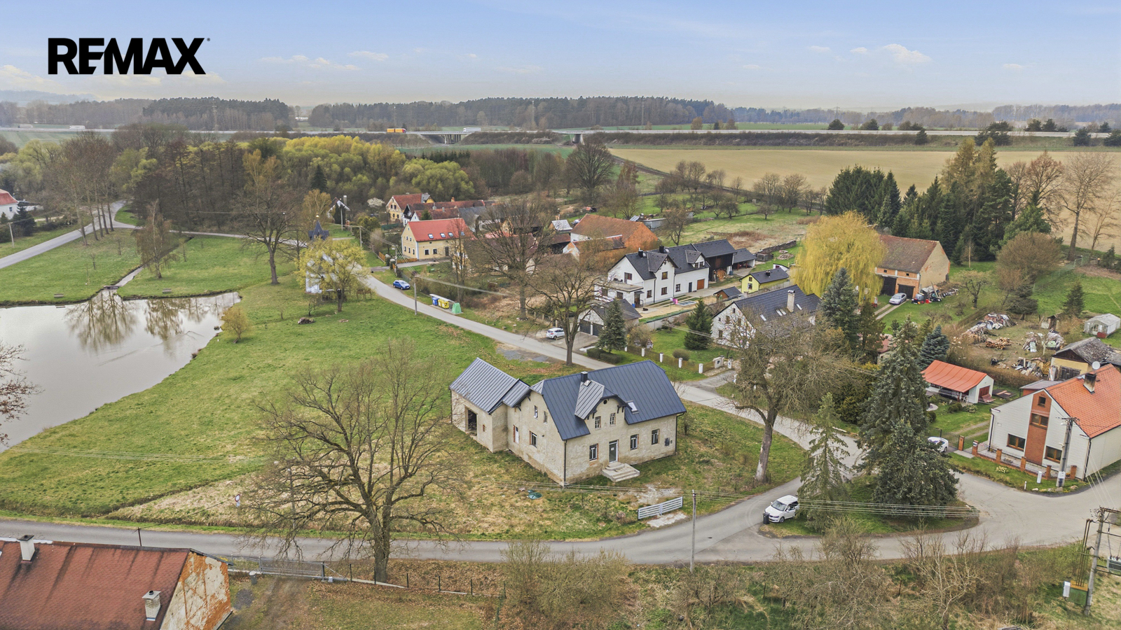 K domu náleží pozemek o rozloze 1 036 m² s výhledem na rybník.