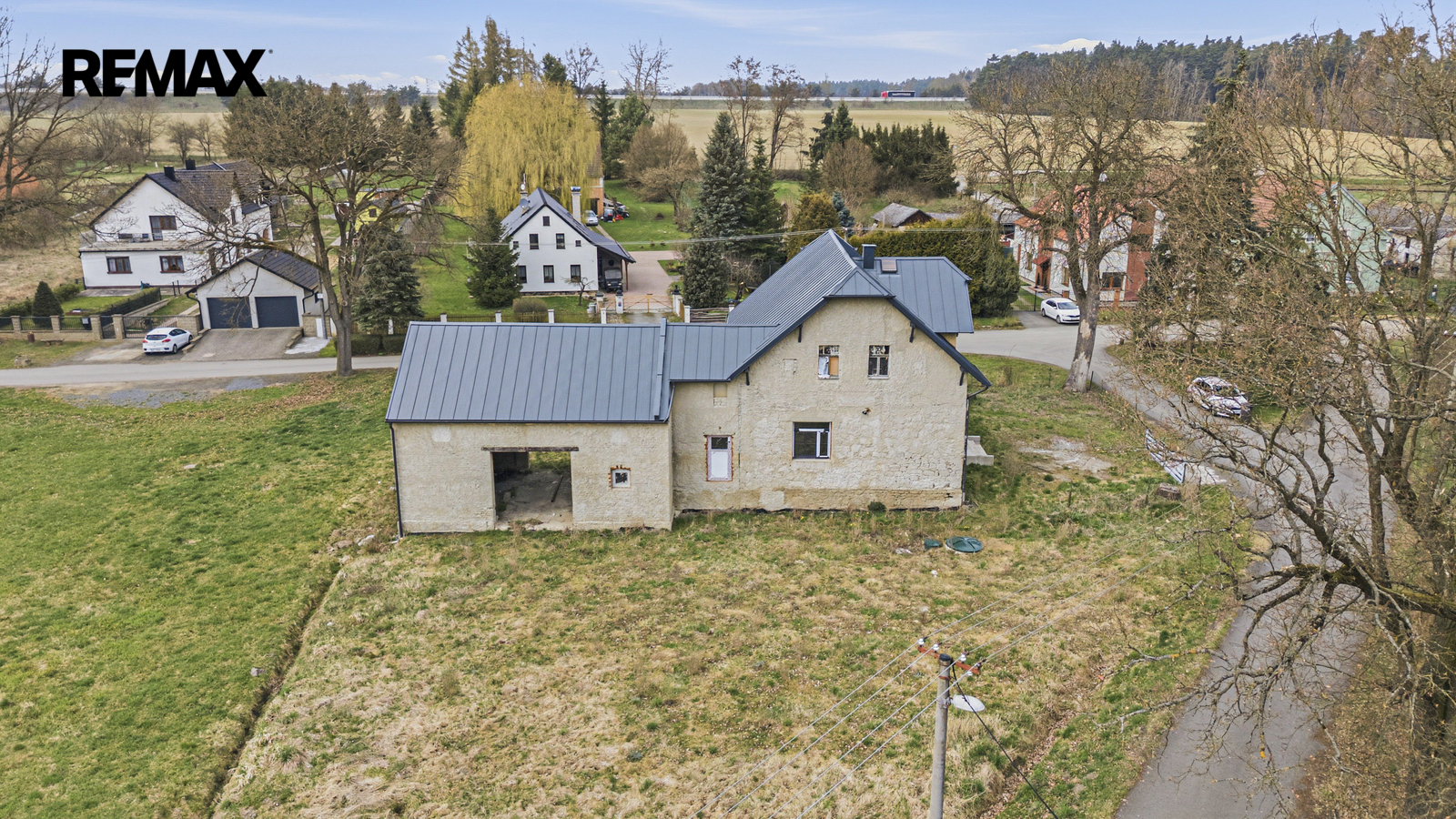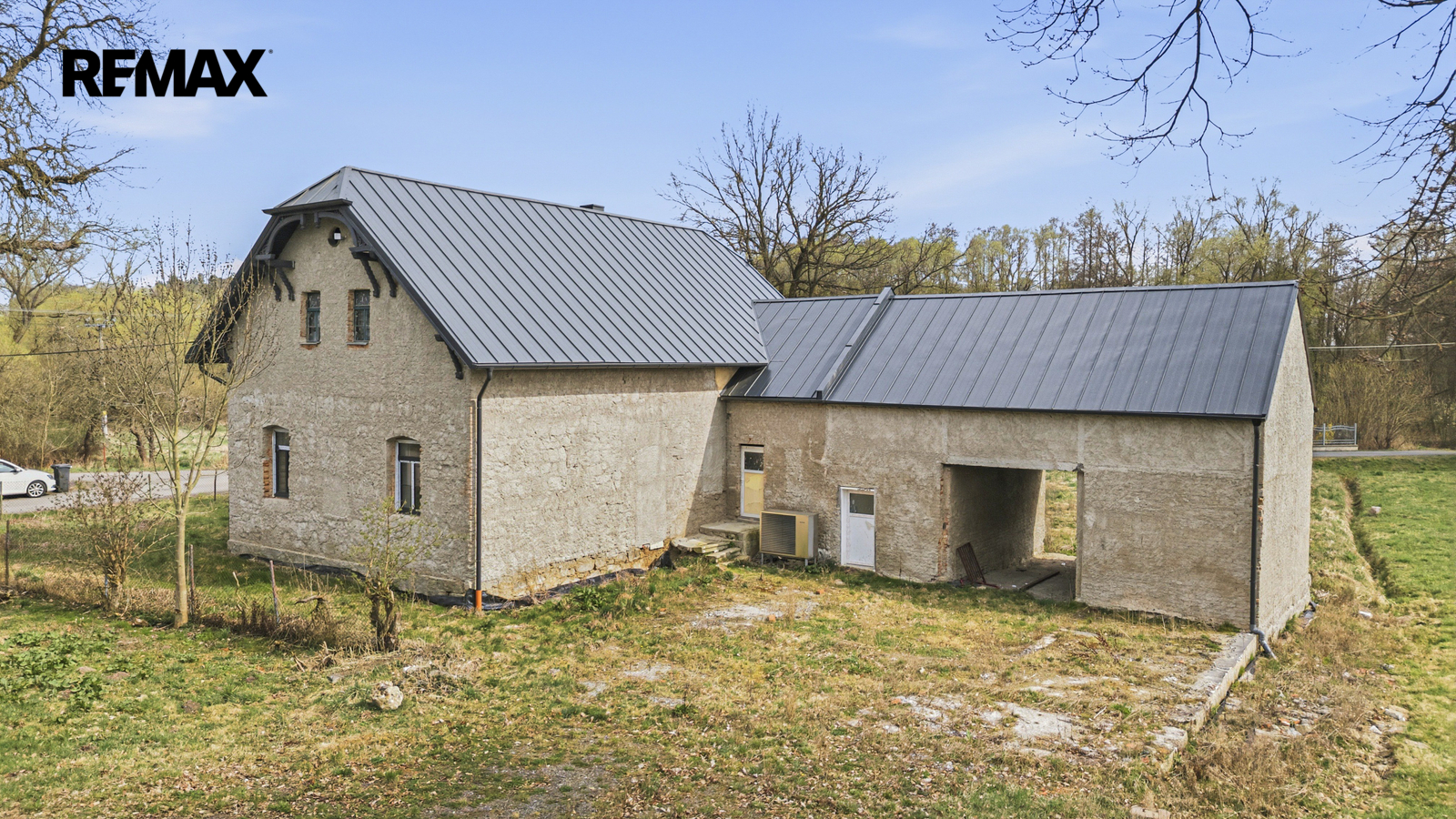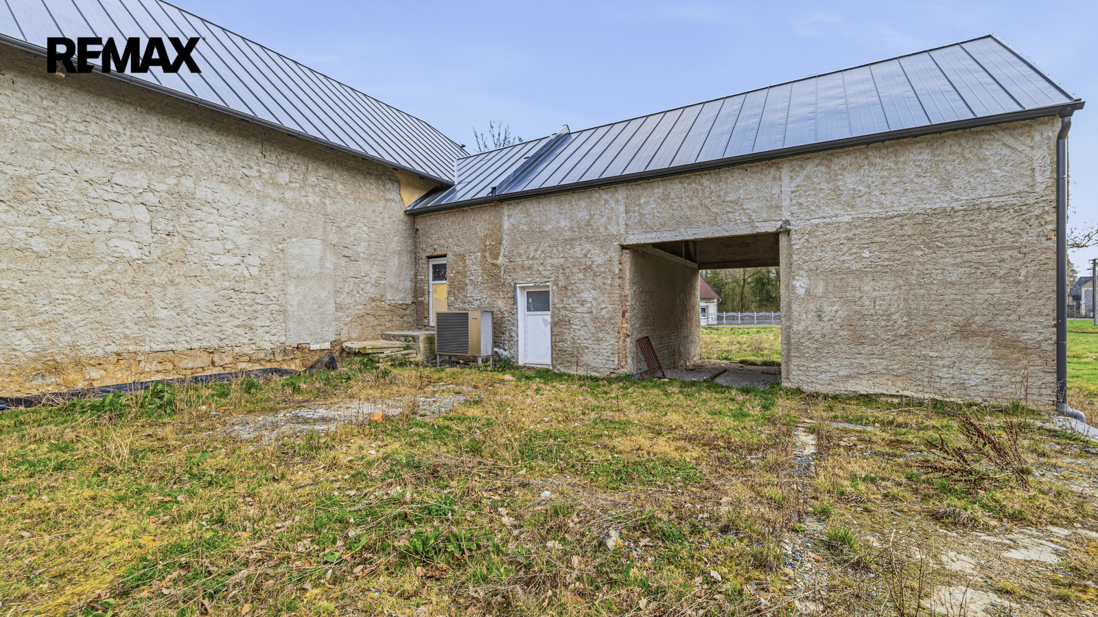 Na obytnou část navazuje prostorná stodola vhodná pro garáž, dílnu nebo rozšíření obytného prostoru.