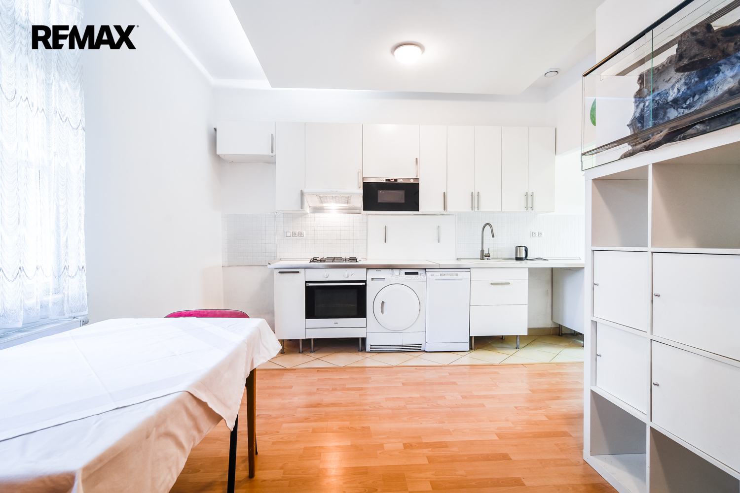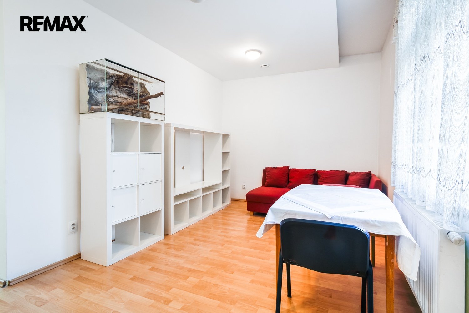 Interiér prošel v roce 2014 kompletní rekonstrukcí, která chytře využila každý metr čtvereční. Srdcem bytu je obývací pokoj s kuchyňským koutem, na který navazuje prostorná ložnice a dva menší, samostatné pokoje – ideální jako dětské pokoje nebo klidné pracovny. Součástí dispozice je prostorná koupelna s vanou, umyvadlem, WC a bidetem. Původní špaletová okna byla odborně repasována a osazena trojskly, což zajišťuje skvělou tepelnou izolaci i ticho. Byt je orientován na jihozápad do klidného vnitrobloku se vzrostlou zahradou, kterou majitelé i jejich děti v minulosti aktivně využívali k relaxaci a hrám. K bytu náleží nadstandardně velký zděný sklep (cca 6 m²) v suterénu domu.