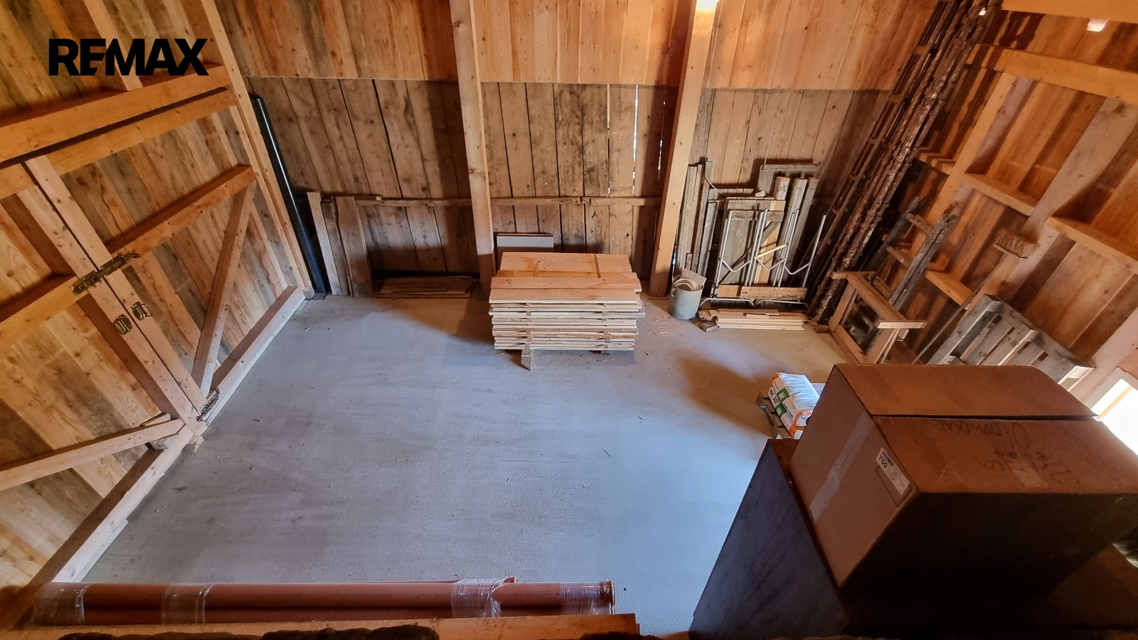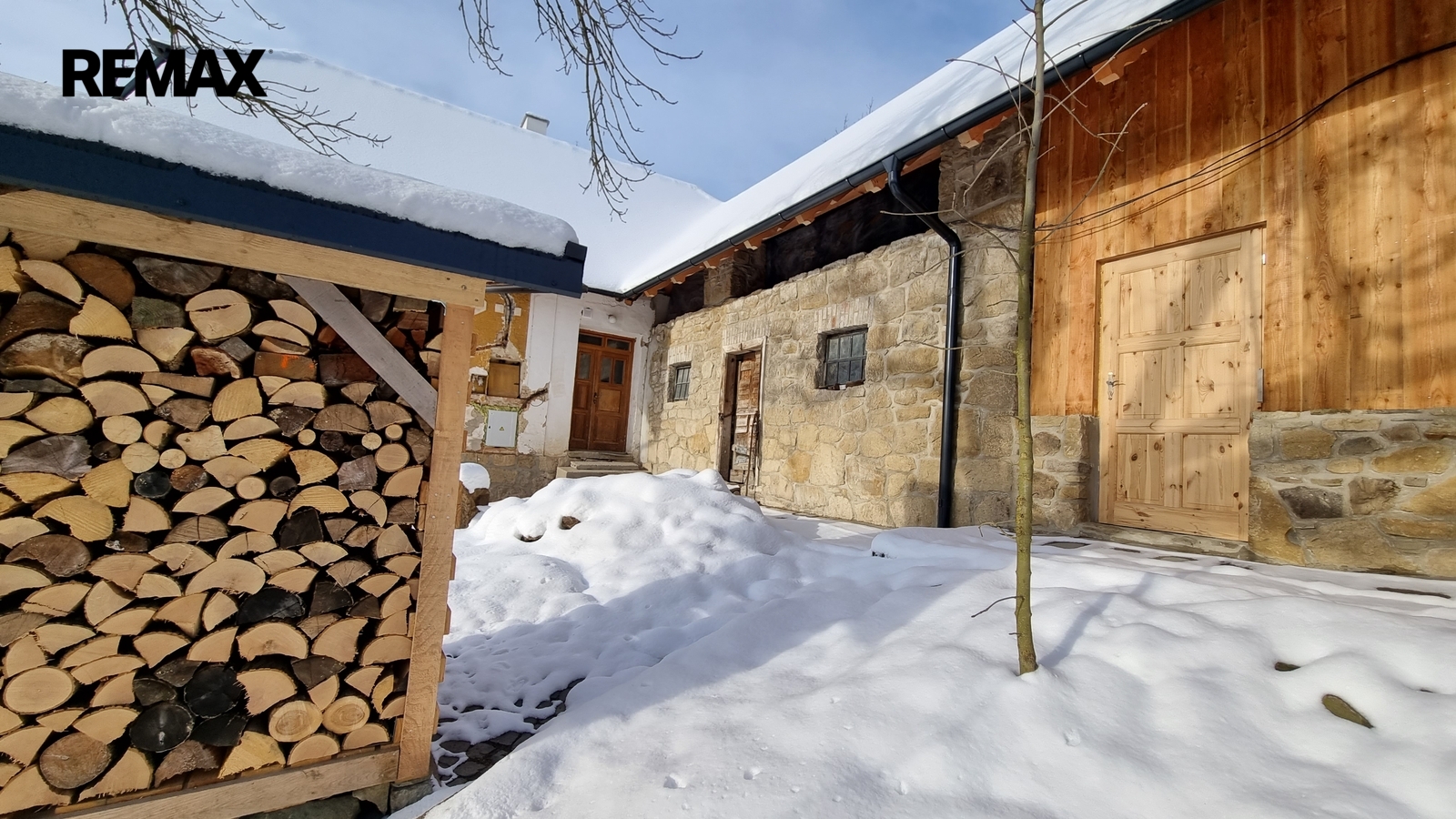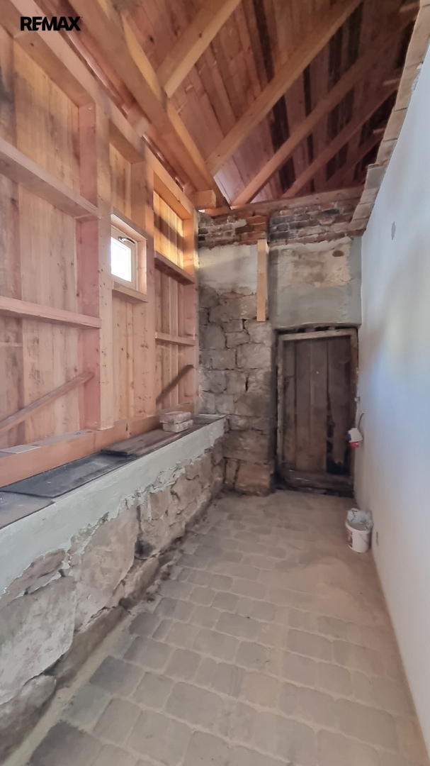 Pravá strana domu slouží jako garáž. V zadní části je samostatný vstup do malebného prostoru, kde je možné vybudovat např.saunu, nebo jinému využití. Bývalé chlévy jsou napojeny dveřmi na obytný prostor také s možností dalšího rozšíření.