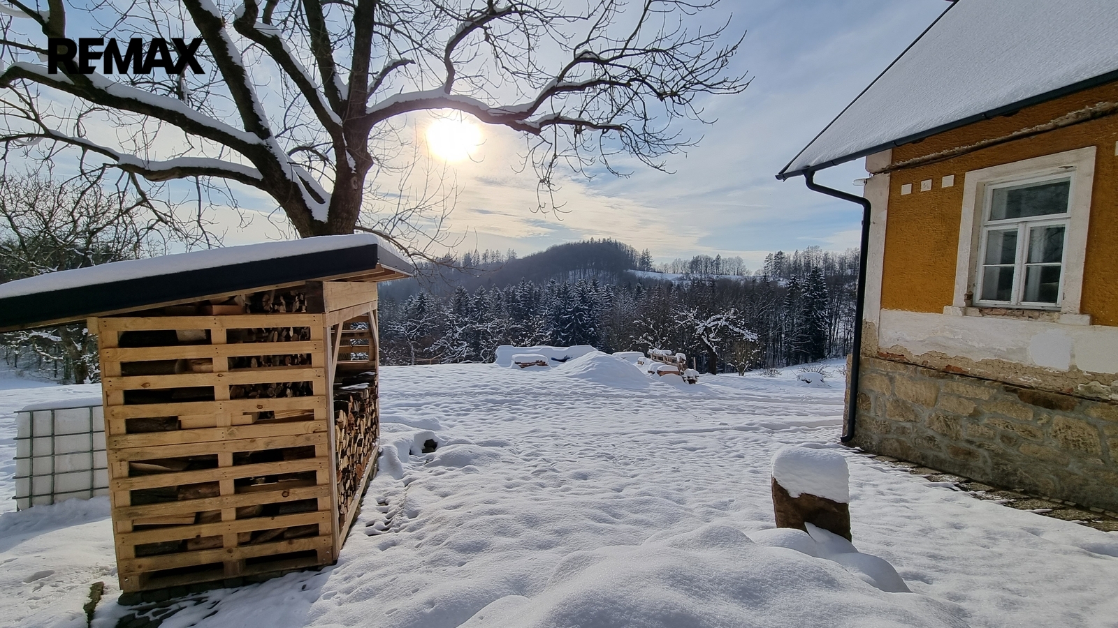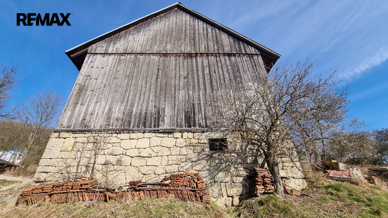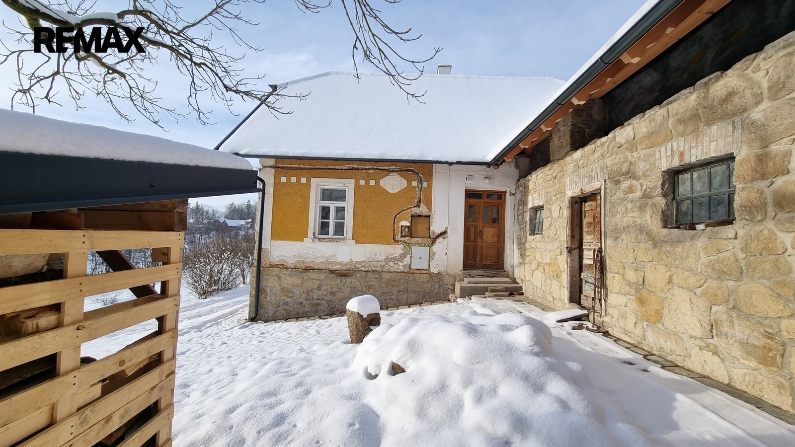 Pravá strana domu slouží jako garáž. V zadní části je samostatný vstup do malebného prostoru, kde je možné vybudovat např.saunu, nebo jinému využití. Bývalé chlévy jsou napojeny dveřmi na obytný prostor také s možností dalšího rozšíření.