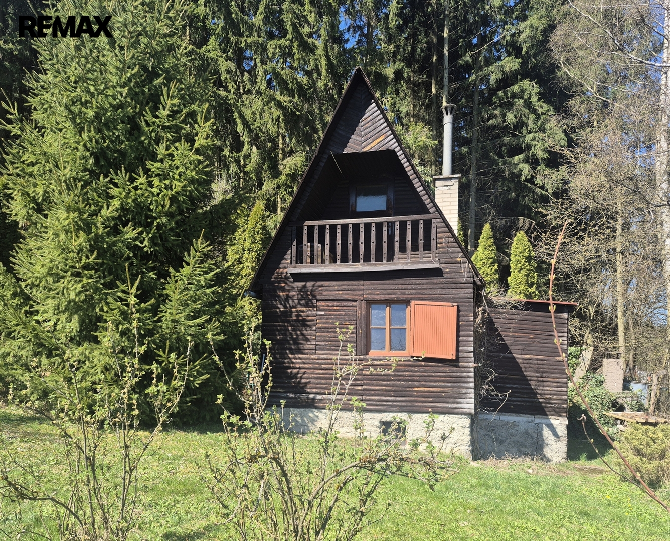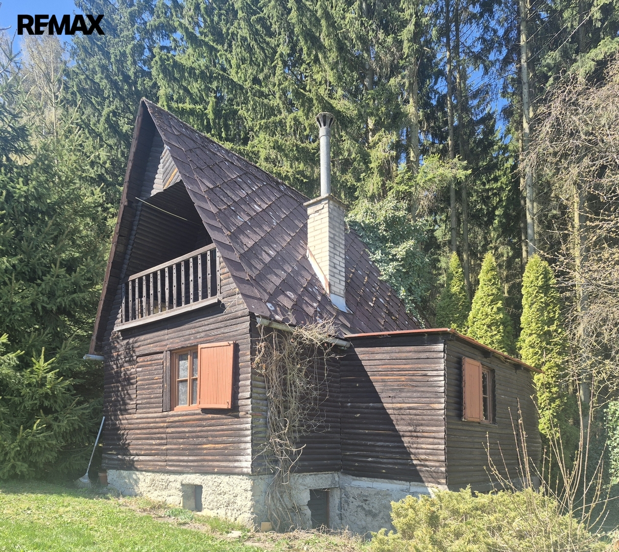 Exkluzivní prodej dřevěné částečně podsklepené chaty se zahradou v chatové oblasti zvané „Obora“ v k.ú. a obci Lanškroun.