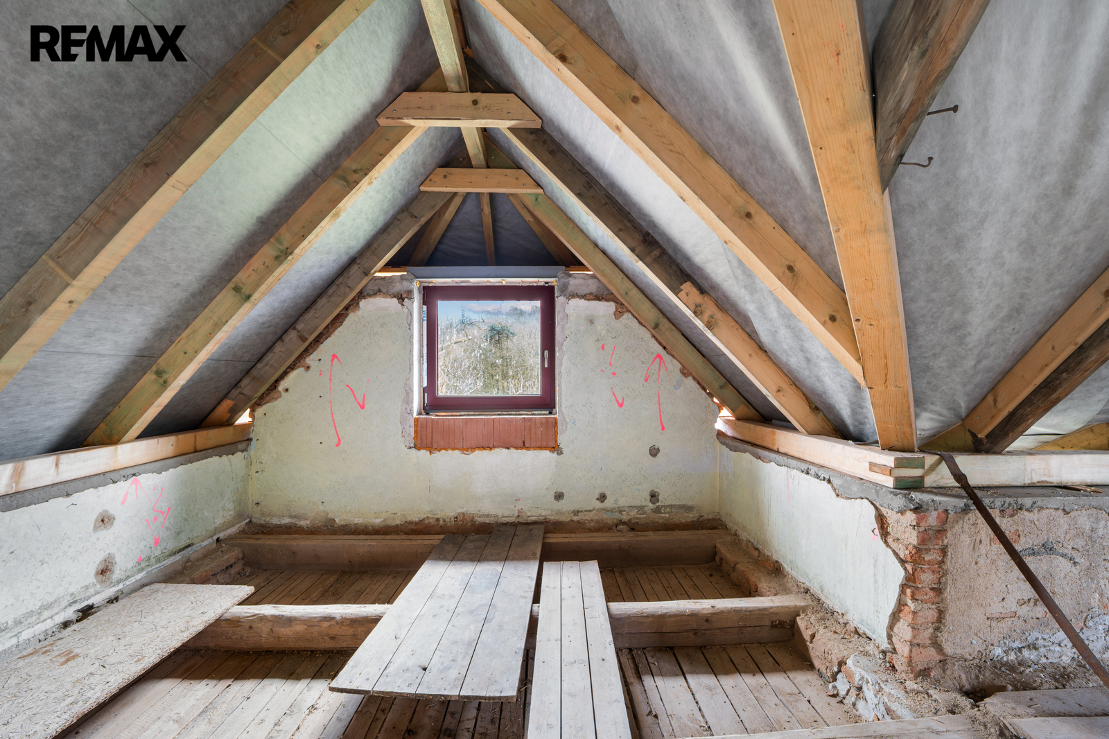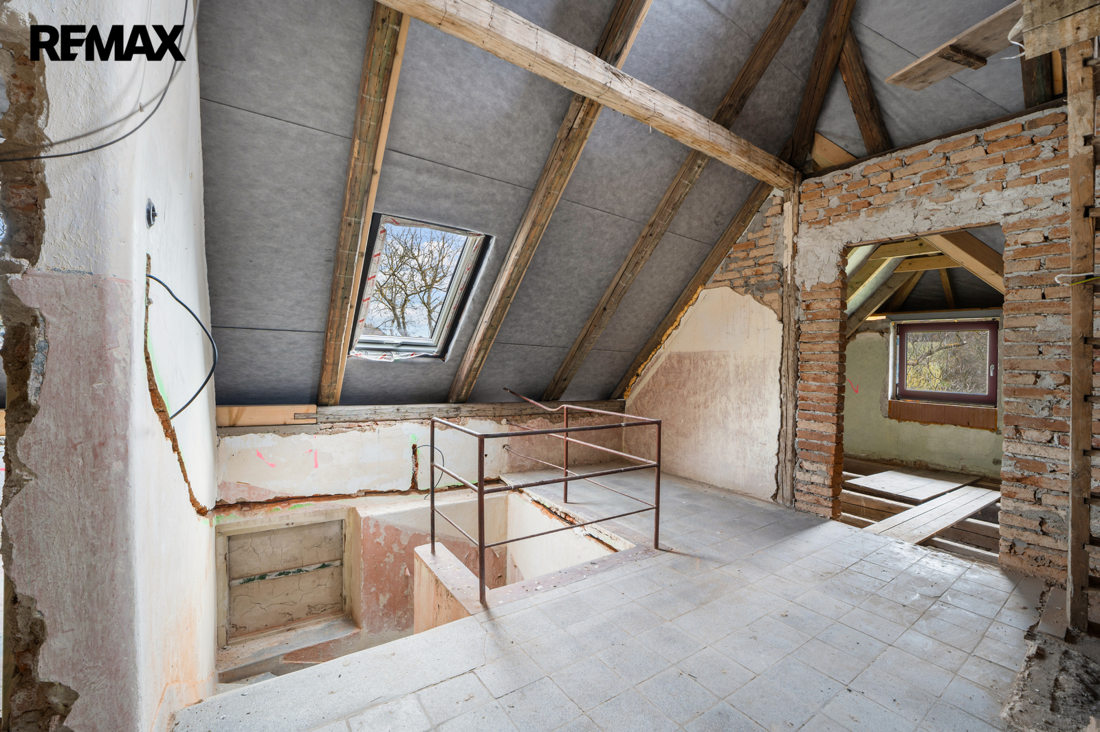 Na obrovském pozemku velkém přes 2500 m2 nabízíme prvorepublikovou vilku o dispozici 5+kk + garsonka/wellness se samostatným vstupem. Dům prochází citlivou rekonstrukcí, která již byla z větší části realizována. Provedeny byly například tyto práce: kompletní hydroizolace objektu, úprava dispozic, instalace tepelného čerpadla včetně samotných jednotek (vnitřní i vnější včetně nádrží), výměna oken, výměna střechy (podstatná část krovu, krytina včetně fólií), příprava rozvodů elektřiny, realizace nové studny apod. K dokončení tak jsou interiéry a fasáda včetně zateplení.