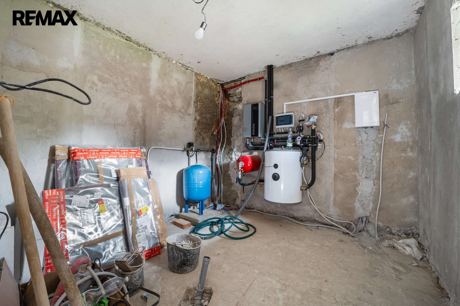 Dům je napojen na elektřinu (novou přípojkou), vodu získává z nové vydatné studny (je zde i stará, kterou lze také obnovit, ale není k tomu důvod) a odpad původního domu řešila jímka, s domem však předáme stavební povolení k realizaci čističky.