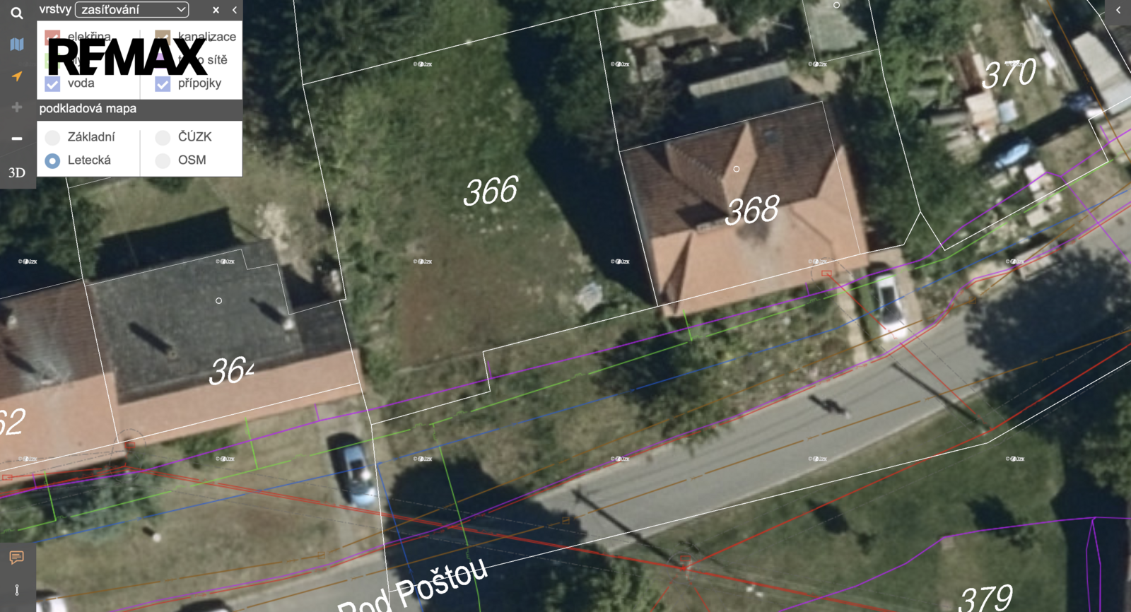 Inženýrské sítě se nachází v bezprostřední blízkosti pozemku, což usnadňuje napojení budoucí stavby.