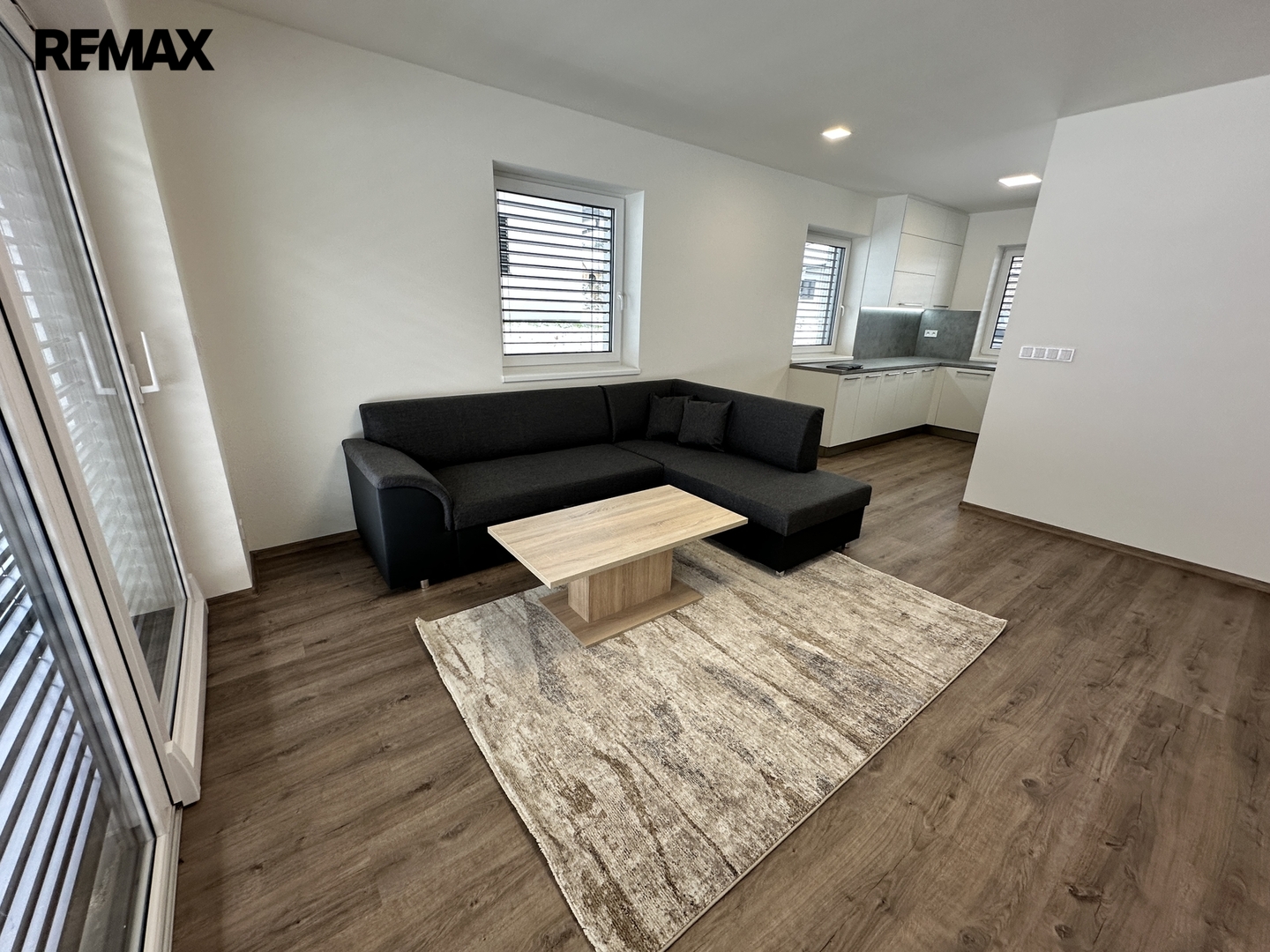 Dům je dispozičně velmi dobře navržen pro menší rodinu. U vstupu je zádveří, kde se nachází jednotka tepelného čerpadla, kterou lze prakticky a esteticky zakomponovat do předsíňové stěny. Dále je zde WC. Následuje prostorný obývací pokoj s kuchyní, přes který se dostanete na jižně orientovanou terasu, kde je možné nechat vyrobit pergolu na míru. V ceně je zahrnuta kuchyňská linka českého výrobce včetně elektrospotřebičů značky Philco – indukční deska, digestoř, kombinovaná lednice s mrazákem, dřez s baterií, myčka, mikrovlnná trouba.