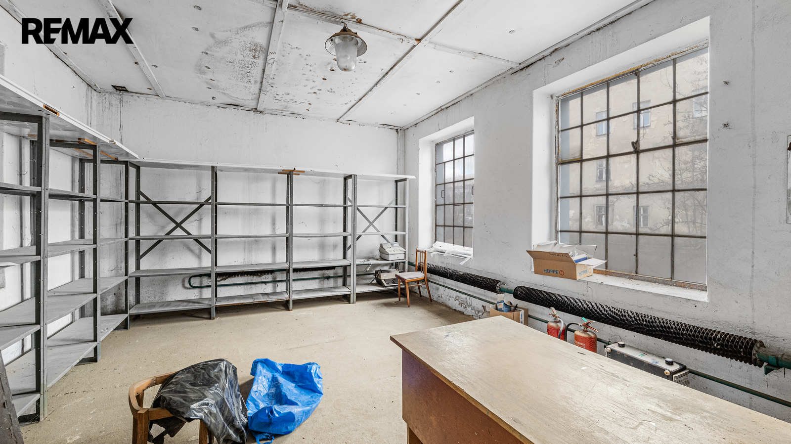 Ve vnitrobloku je k dispozici výrobní hala s přímým vjezdem, vhodná pro výrobu, servis, e-shop nebo sportovní využití. Na halu navazuje třípatrový sklad, který zajišťuje efektivní provoz.