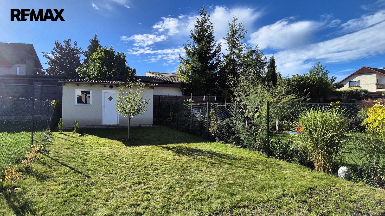 Velkým benefitem je udržovaná zahrada o velikosti 103 m², která rozšiřuje obytný prostor domu. Nabízí bezpečné místo pro děti, prostor pro relax i rodinné aktivity. Díky oplocení máte jistotu soukromí. Praktický zděný zahradní domek řeší úložné prostory bez kompromisů uvnitř domu.