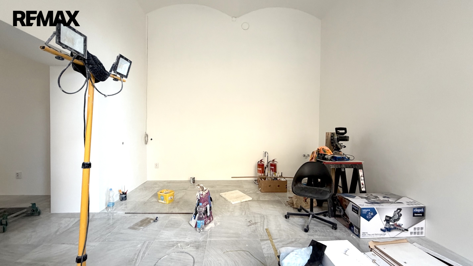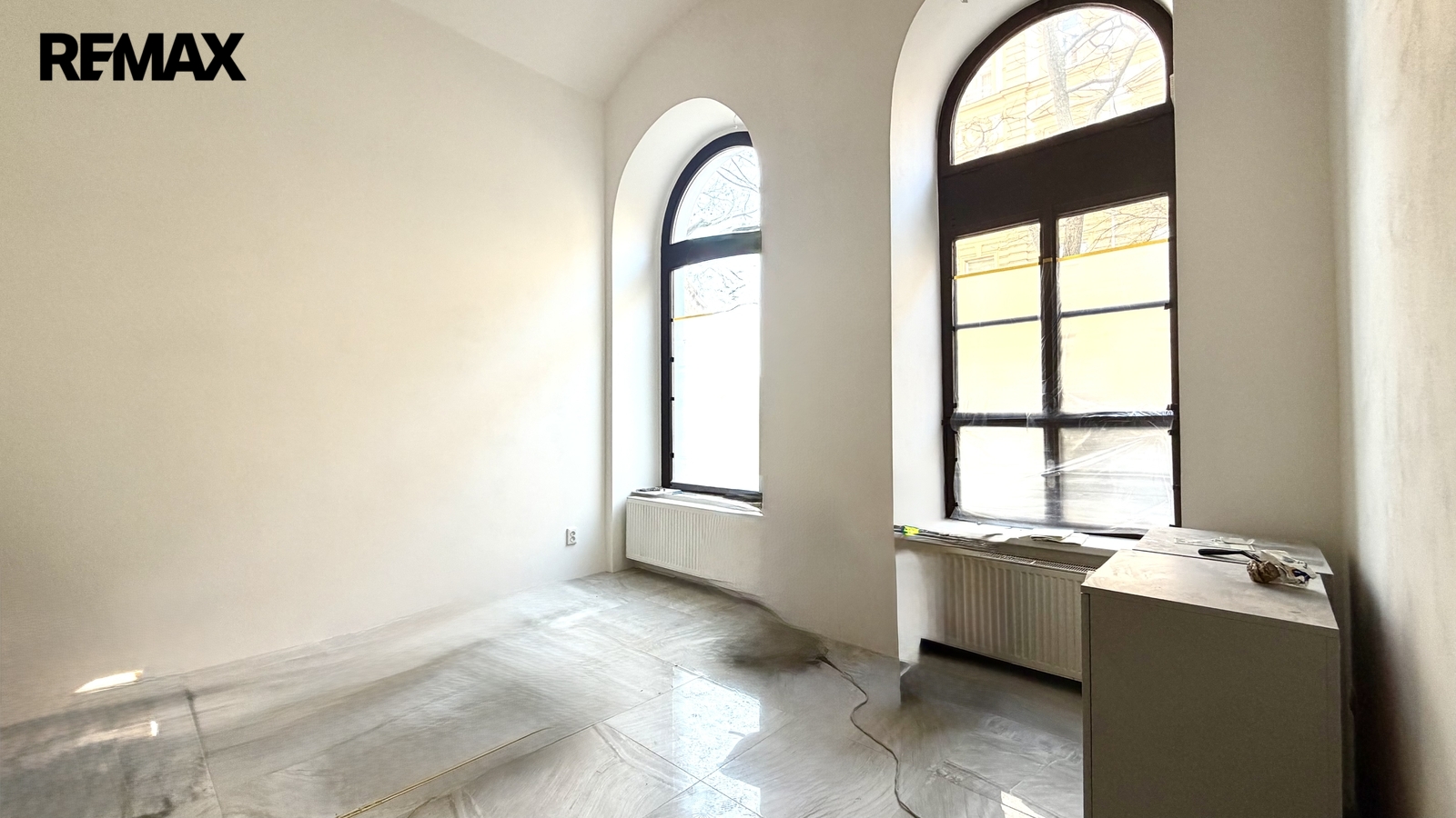 V prostorách je rekonstrukce téměř hotová, ale stále je zde prostor pro vlastní představy a přání. Na podlaze jsou dlaždice, stěny byly vyrovnány, okna prošla kompletní rekonstrukcí a na několika místech byly zřízeny přívody vody. Topení i voda jsou z centrálního rozvodu.
