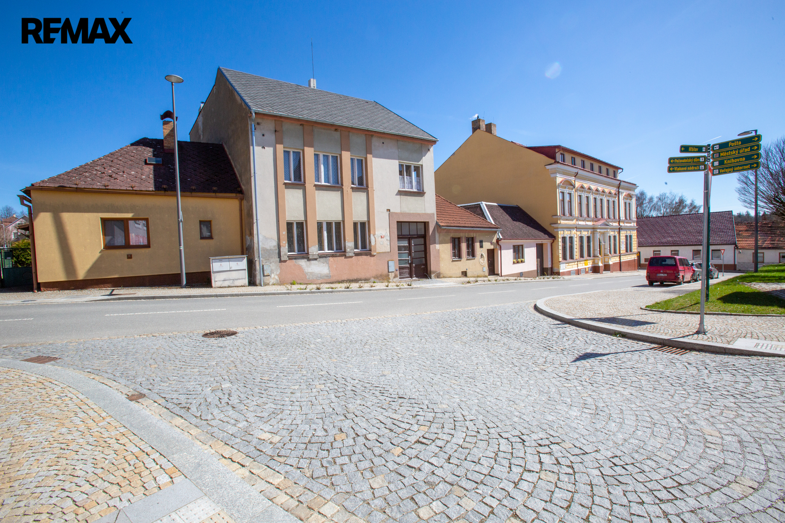 Na dosah je občanská vybavenost - školka, škola, autobusová zastávka, městský úřad, pošta, bankomat, prodejny potravin, řeznictví, železářství, benzínová stanice, prodejna stavebnin, železniční zastávka úzkokolejky, autoservis a další.