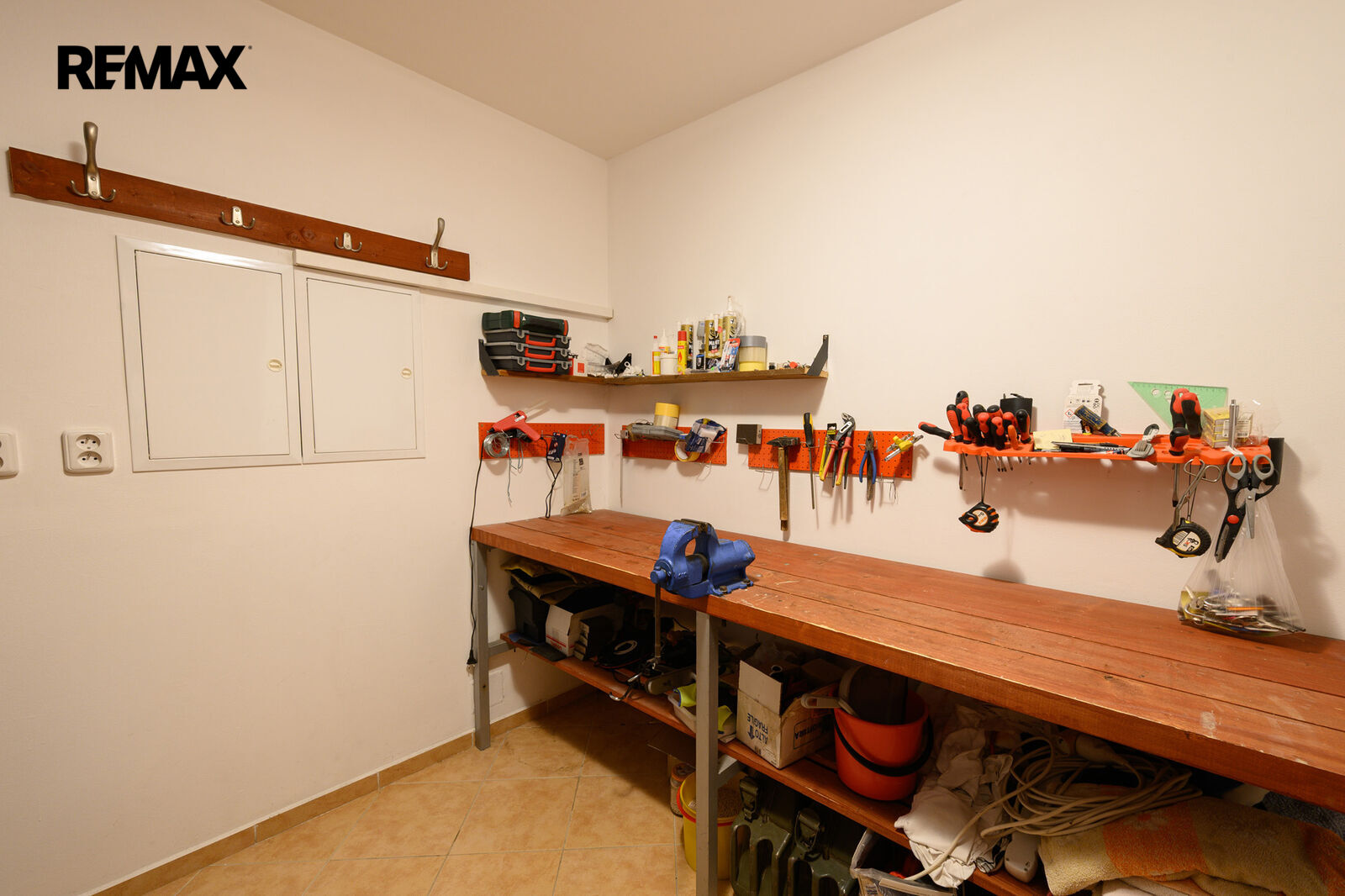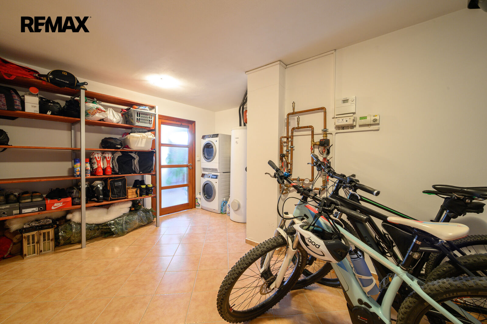 zádveří, atrium, dvougaráž, dílna, technická místnost, sklep a jeden pokoj.