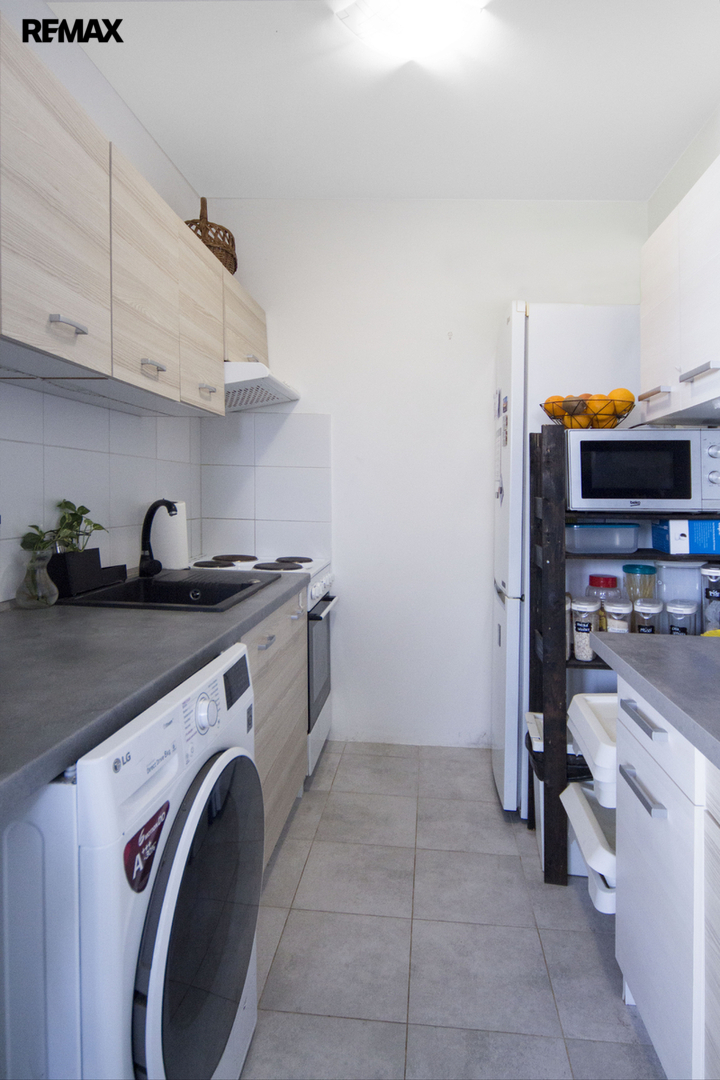 Nabízíme k pronájmu nezařízený byt ve 2. patře panelového domu bez výtahu s dispozicí 1+kk a plochou 34 m2. Pokoj má velikost 20 m2, okna jsou jihozápadním směrem do klidné travnaté plochy se stromy za domem. Vzhledem k tomu je byt příjemně světlý s hezkým výhledem. Kuchyně je umístěna zvlášť, za rohem. Předsíň i sociální zařízení je příjemně prostorné. V koupelně je instalován sprchový kout. Na chodbě na podlaží je k dispozici komora s velikostí cca 2 m2. Topení a ohřev vody je ústřední dálkové. Byt je po rekonstrukci, na podlaze plovoucí laminát či dlažba. Celý dům je zateplen, ve velmi dobrém stavu. Na fotografiích je byt zařízen, nicméně nábytek včetně pračky a lednice je ve vlastnictví současného nájemníka a bude odvezen.