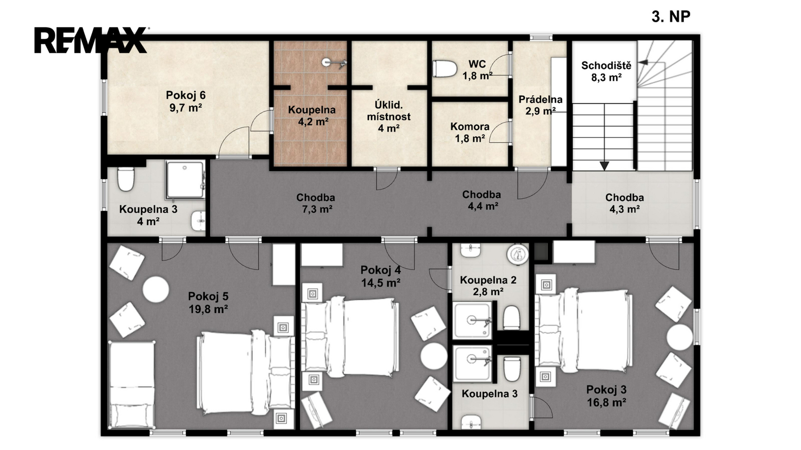 Celková užitná plocha: 435 m²