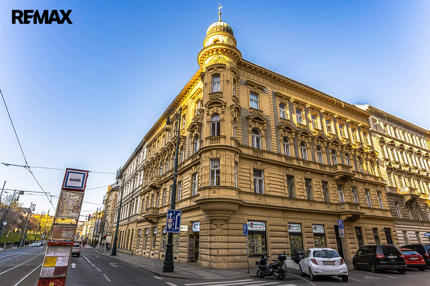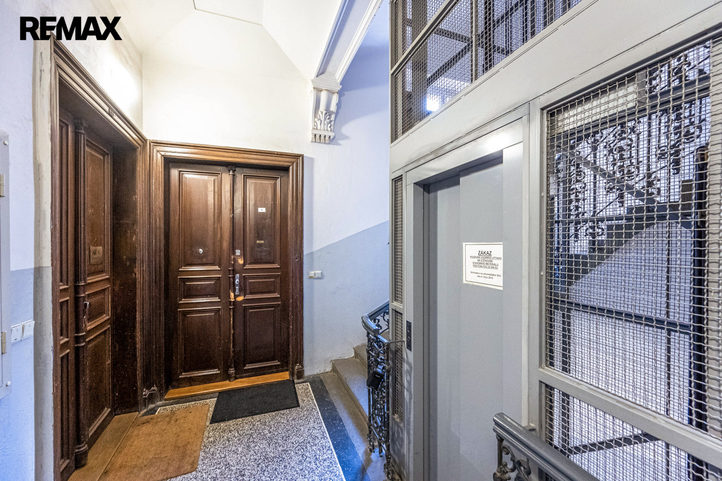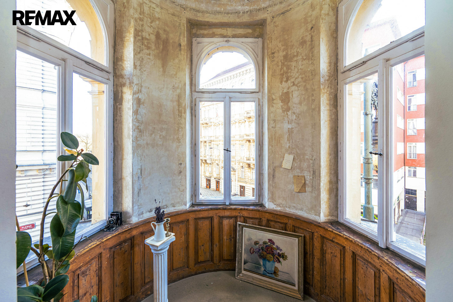 Historický dům s věžičkou na rohu Plaské ulice. Byt ve 3. patře s výtahem, 121 m², po rekonstrukci a s duší, kterou nové stavby nedokážou napodobit.