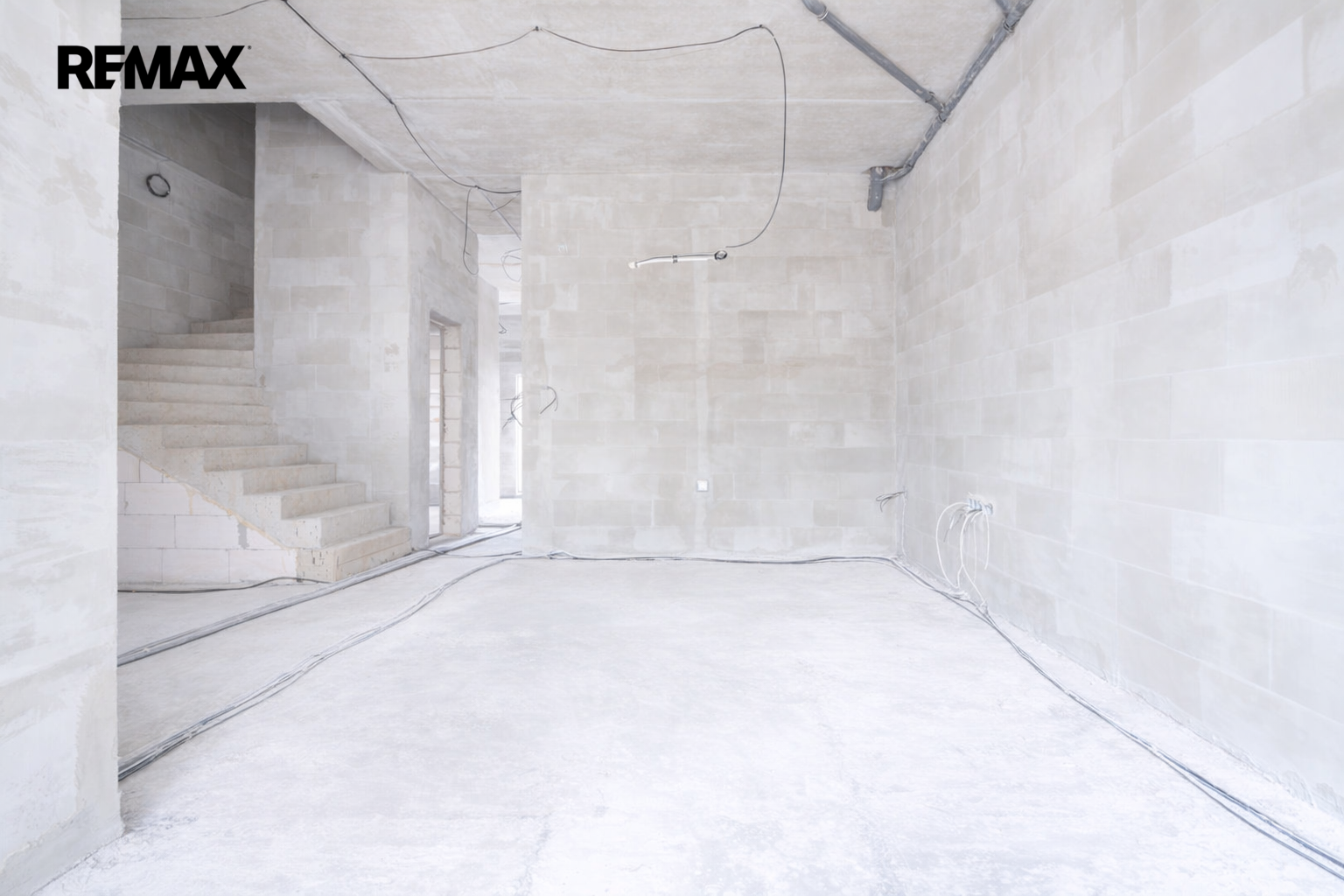 kompletně dokončené koupelny (velkoformátová dlažba, vana i sprchový kout)