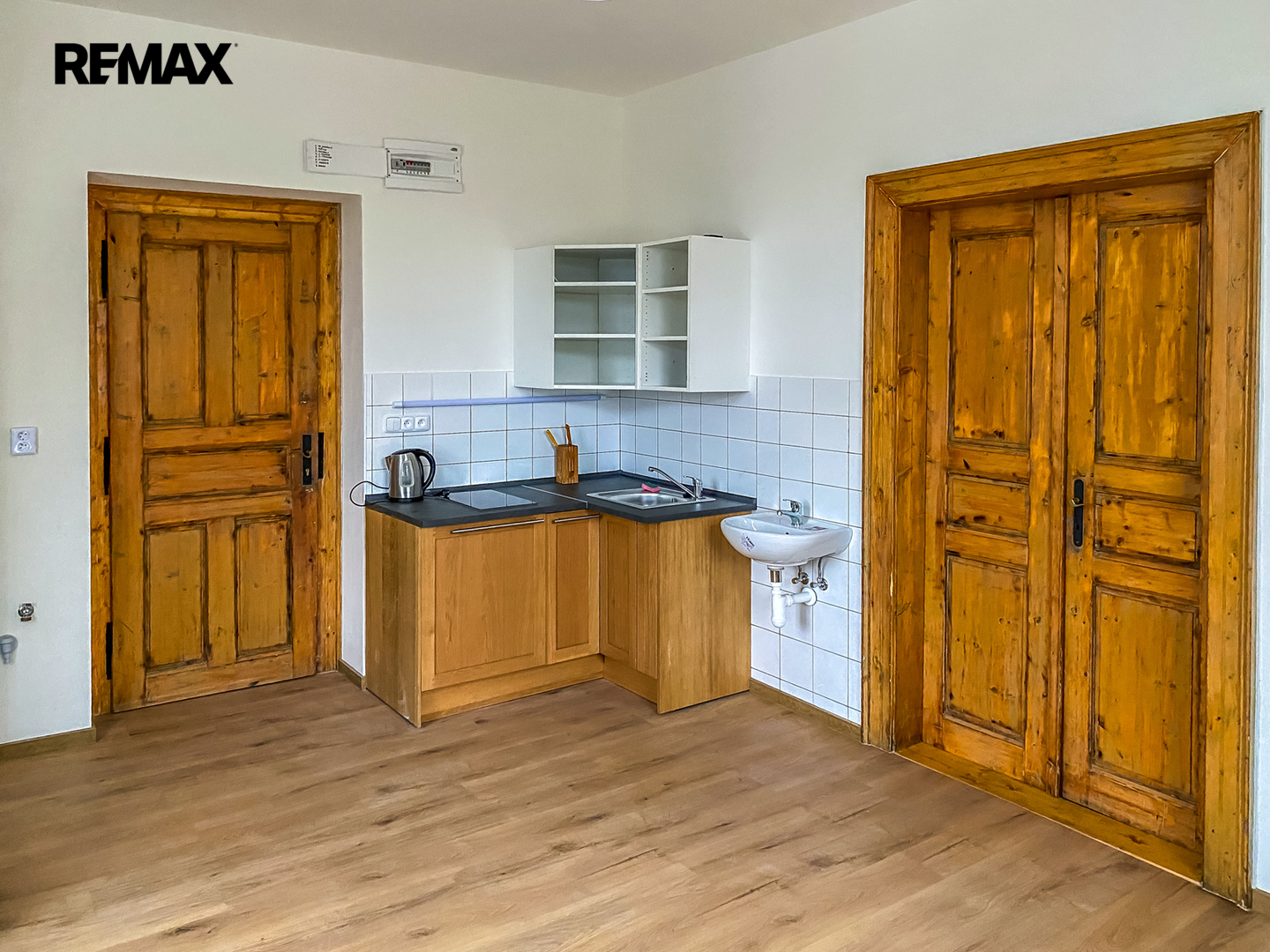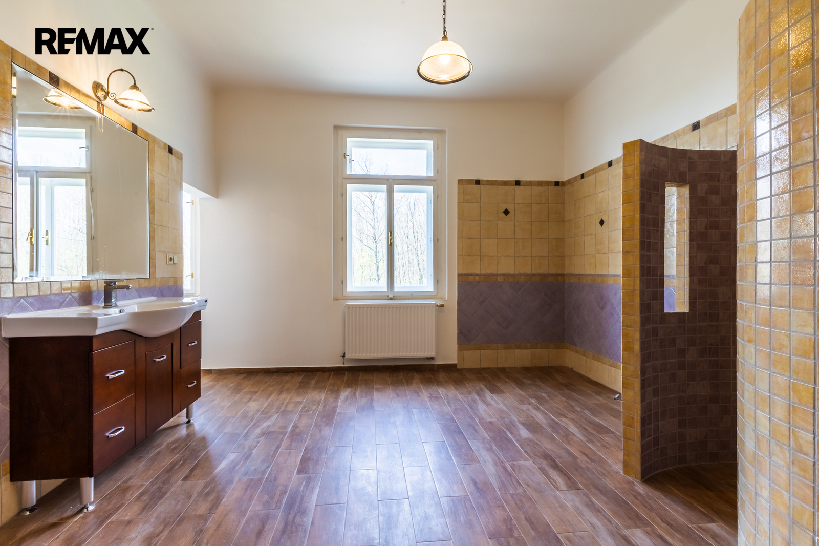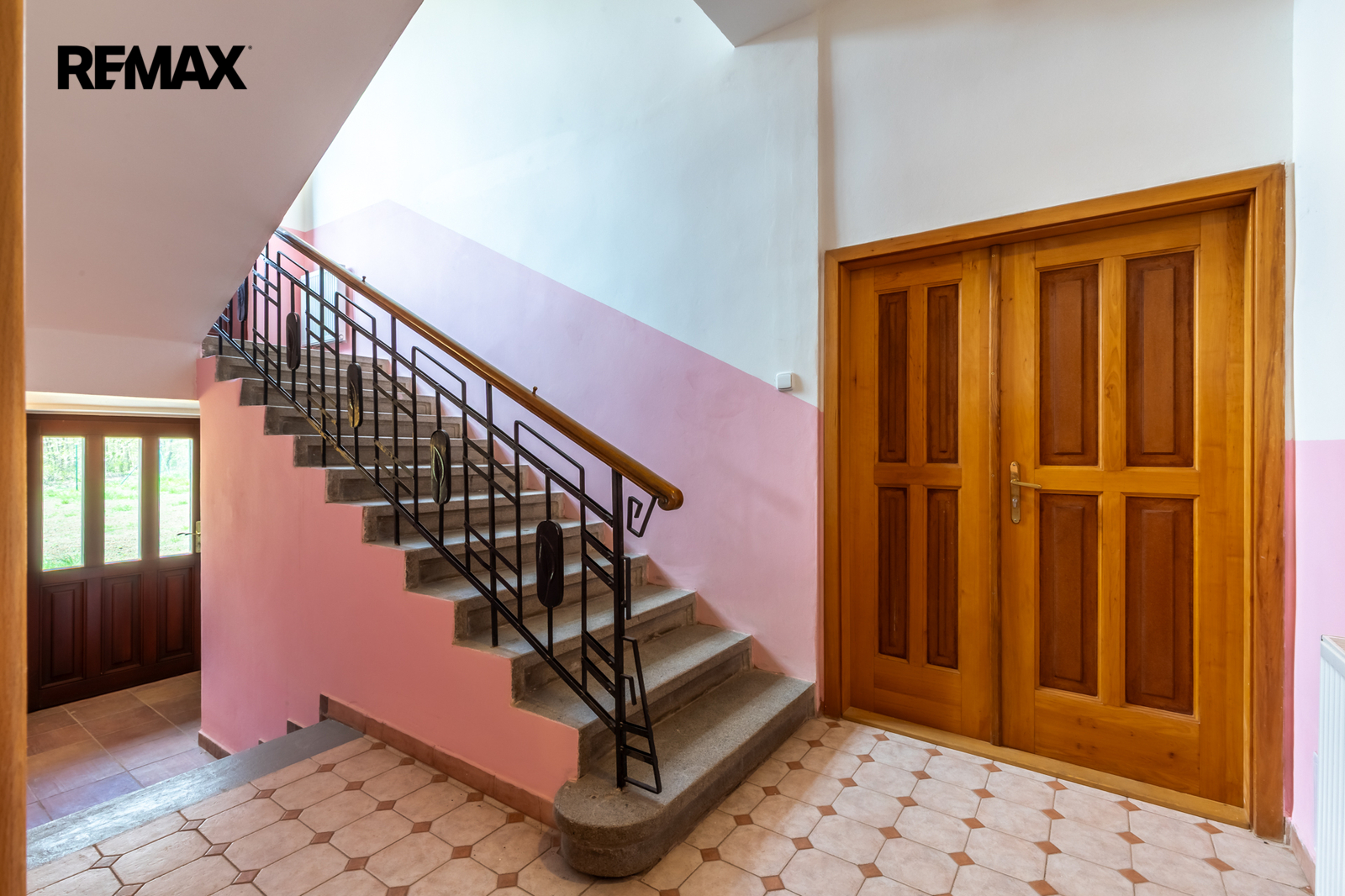 • Podlahy: dřevo a dlažba, okna: dřevěná špaletová